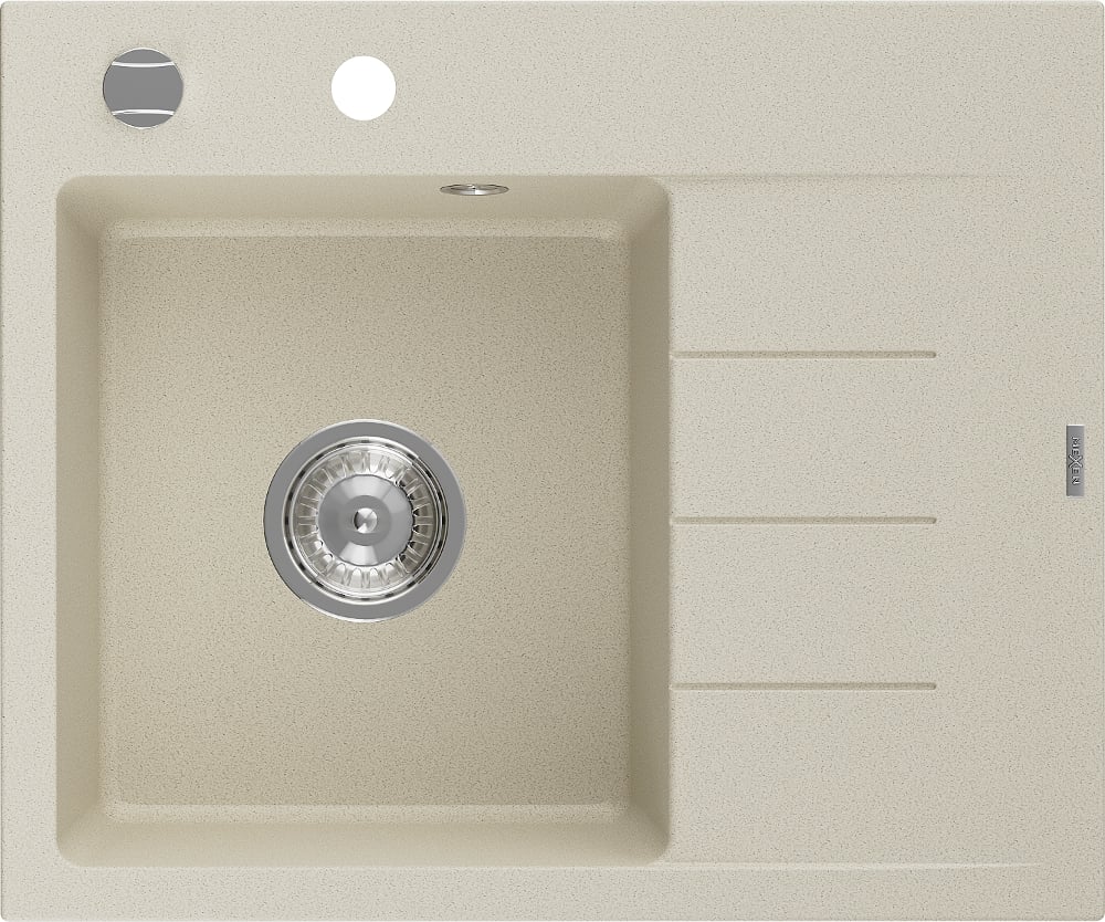 Mexen Ben zlewozmywak granitowy 1-komorowy z ociekaczem lewy 600 x 500 mm, beżowy, syfon chrom - 6522605000-69
