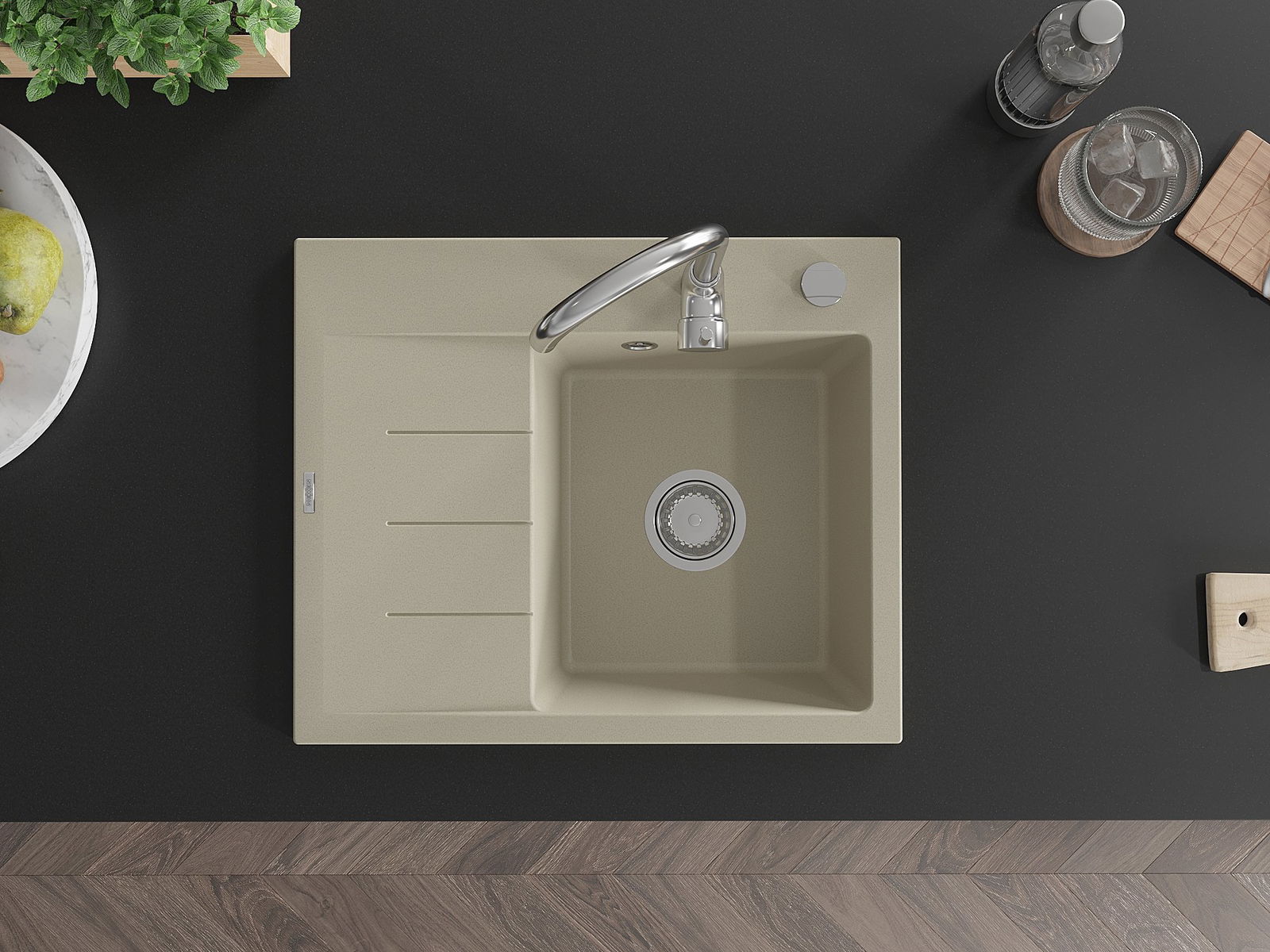 Mexen Ben zlewozmywak granitowy 1-komorowy z ociekaczem prawy 600 x 500 mm, beżowy, syfon chrom - 6523605000-69