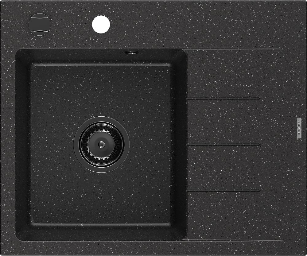 Mexen Ben zlewozmywak granitowy 1-komorowy z ociekaczem lewy 600 x 500 mm czarny/srebrny metalik, syfon czarny - 6522605000-73-B