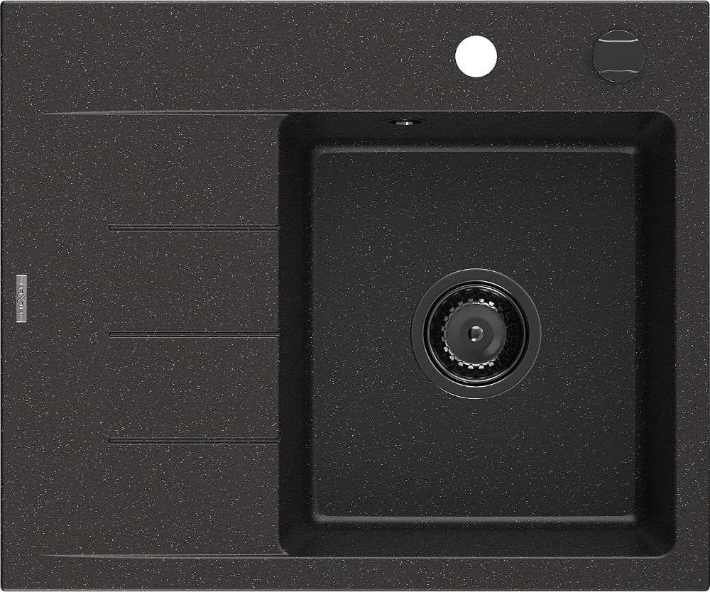 Mexen Ben zlewozmywak granitowy 1-komorowy z ociekaczem, prawy 600x500 mm, czarny/srebrny metalik syfon czarny - 6523605000-73-B