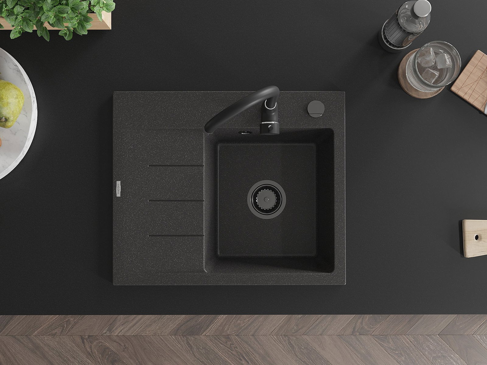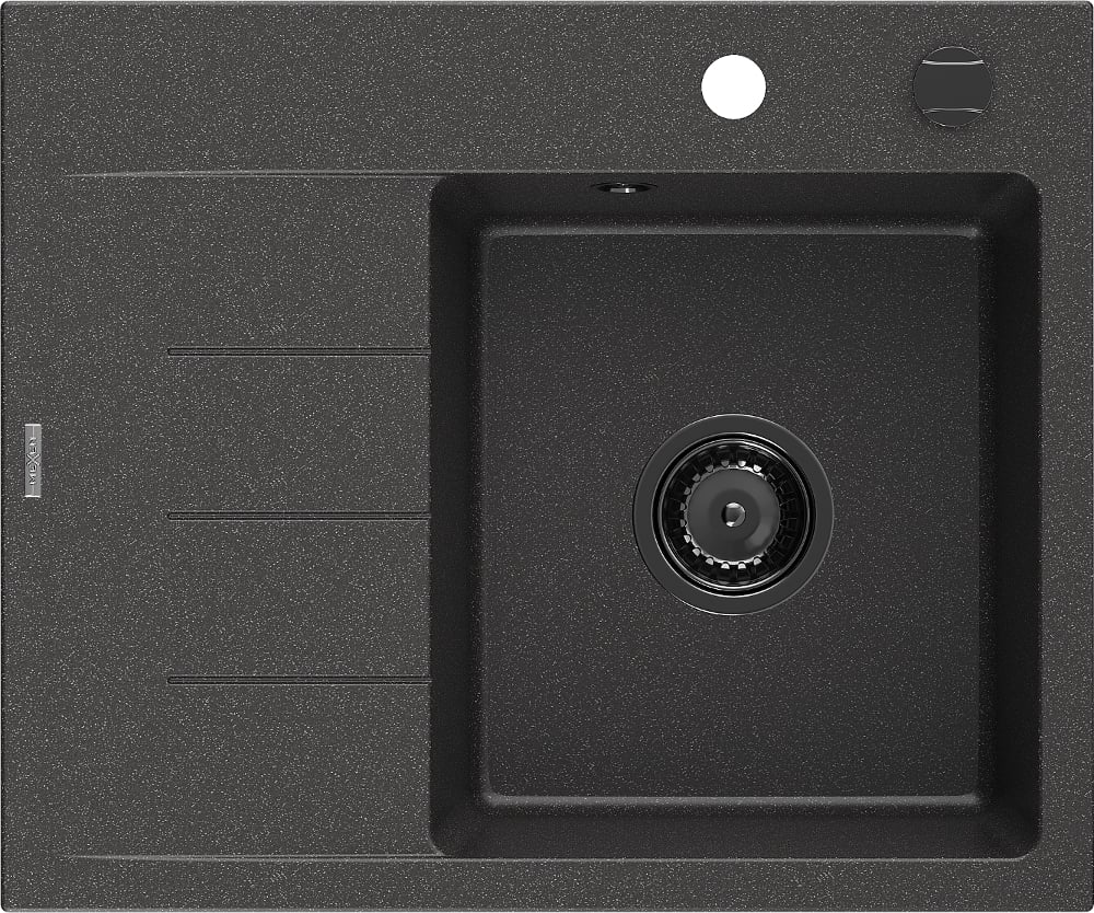 Mexen Ben zlewozmywak granitowy 1-komorowy z ociekaczem prawy 600 x 500 mm, czarny nakrapiany, syfon czarny - 6523605000-76-B