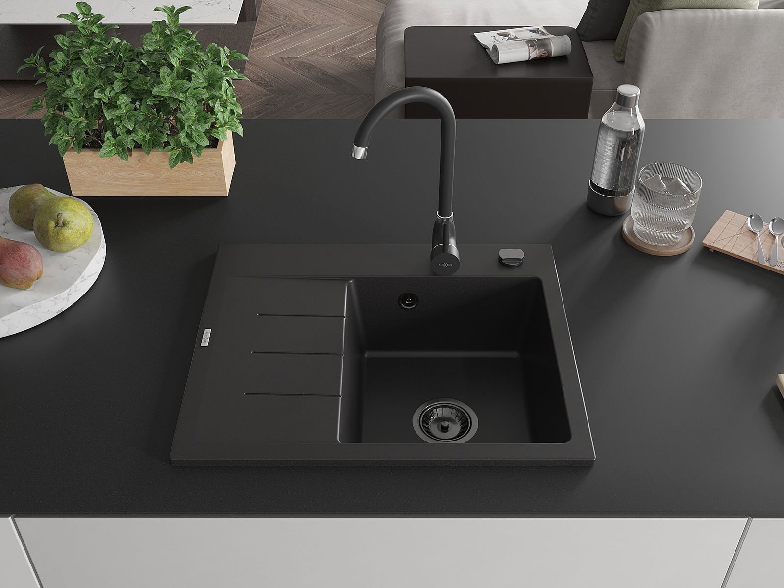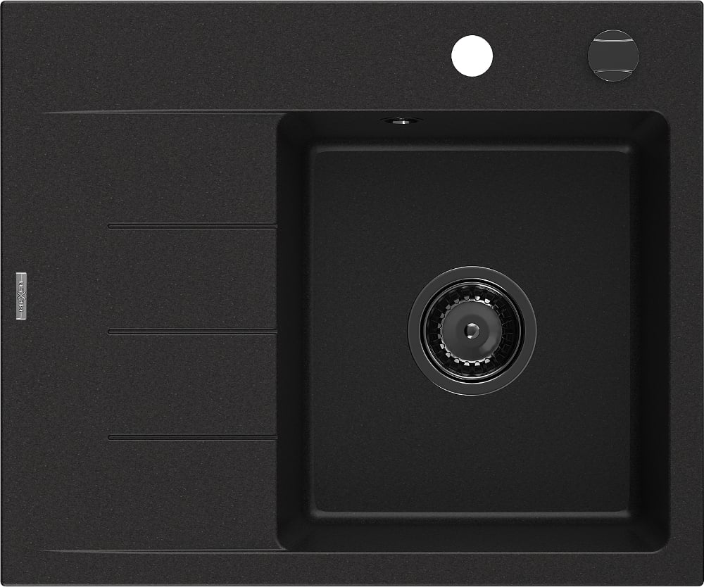 Mexen Ben zlewozmywak granitowy 1-komorowy z ociekaczem prawy 600 x 500 mm, czarny, syfon czarny - 6523605000-77-B