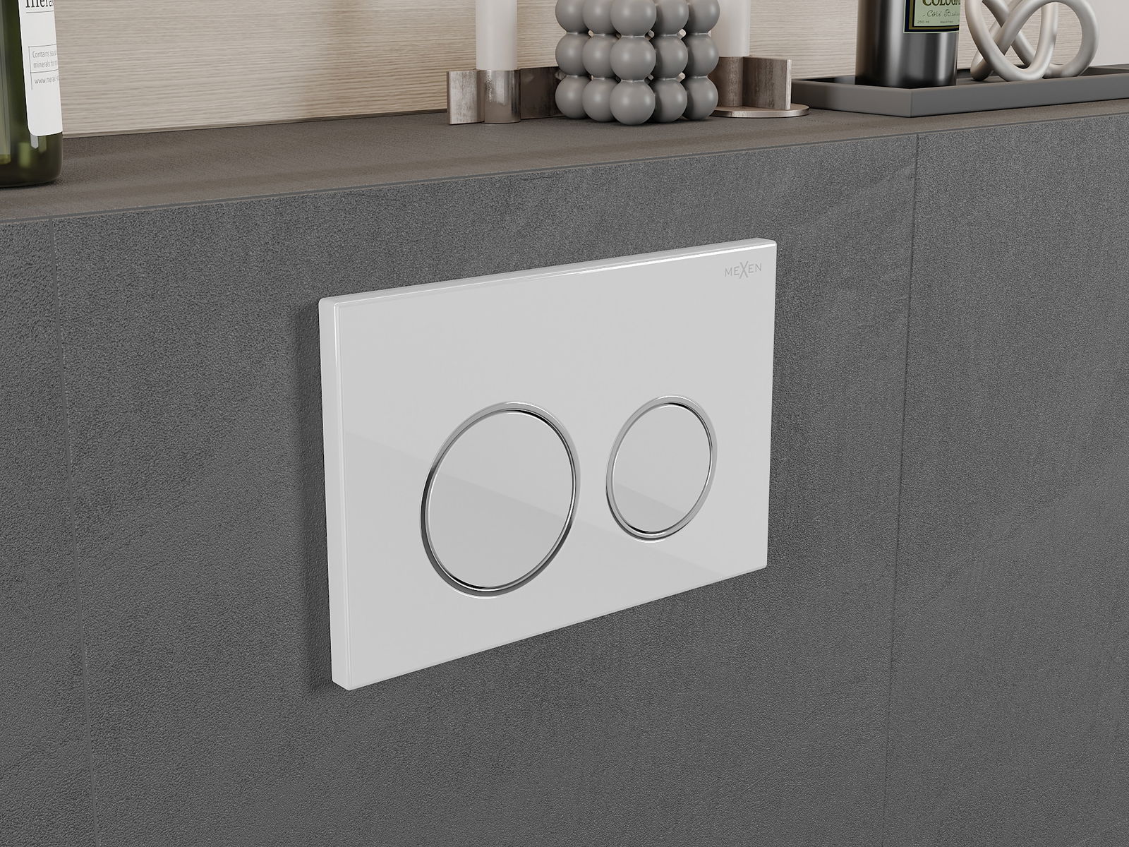 Przycisk jest przeznaczony do stelaży Mexen z serii XS. Może być montowany zarówno od przodu, jak i od góry stelaża, co zwiększa jego uniwersalność. Takie rozwiązanie ułatwia instalację w różnych warunkach montażowych. Dzięki temu obsługa spłukiwania jest wygodna i intuicyjna.