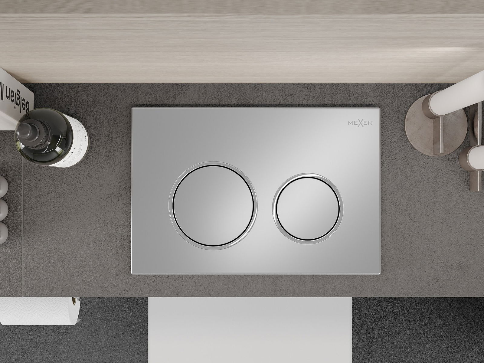 Przycisk jest przeznaczony do stelaży Mexen z serii XS. Może być montowany zarówno od przodu, jak i od góry stelaża, co zwiększa jego uniwersalność. Takie rozwiązanie ułatwia instalację w różnych warunkach montażowych. Dzięki temu obsługa spłukiwania jest wygodna i intuicyjna.