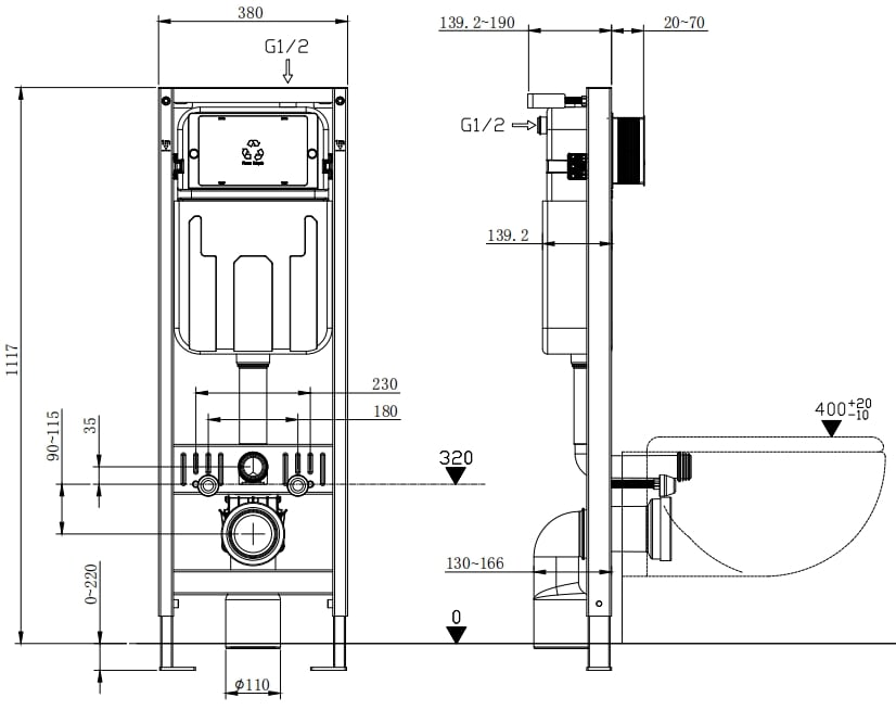 Możliwość regulacji wysokości stelaża pozwala na lepsze dopasowanie do różnych warunków technicznych w łazience. Elastyczny zakres regulacji zapewnia wygodę montażu oraz uzyskanie optymalnej wysokości stelaża.