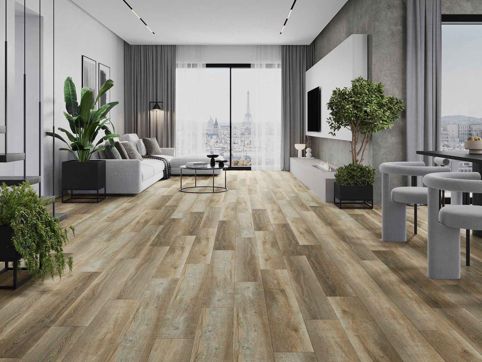 Panele posiadają 4-stronną fugę - każdy bok został wyfrezowany w taki sposób, by po ułożeniu powstało łączenie w kształcie litery V. Taki design sprawia, że podłoga nabiera wyraźniejszej struktury, co nadaje jej głębi i estetycznego charakteru. Efekt ten jest szczególnie ceniony w nowoczesnych aranżacjach, gdzie detale podkreślają wyjątkowy wygląd wnętrza.