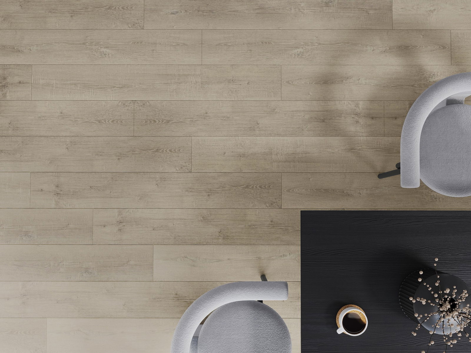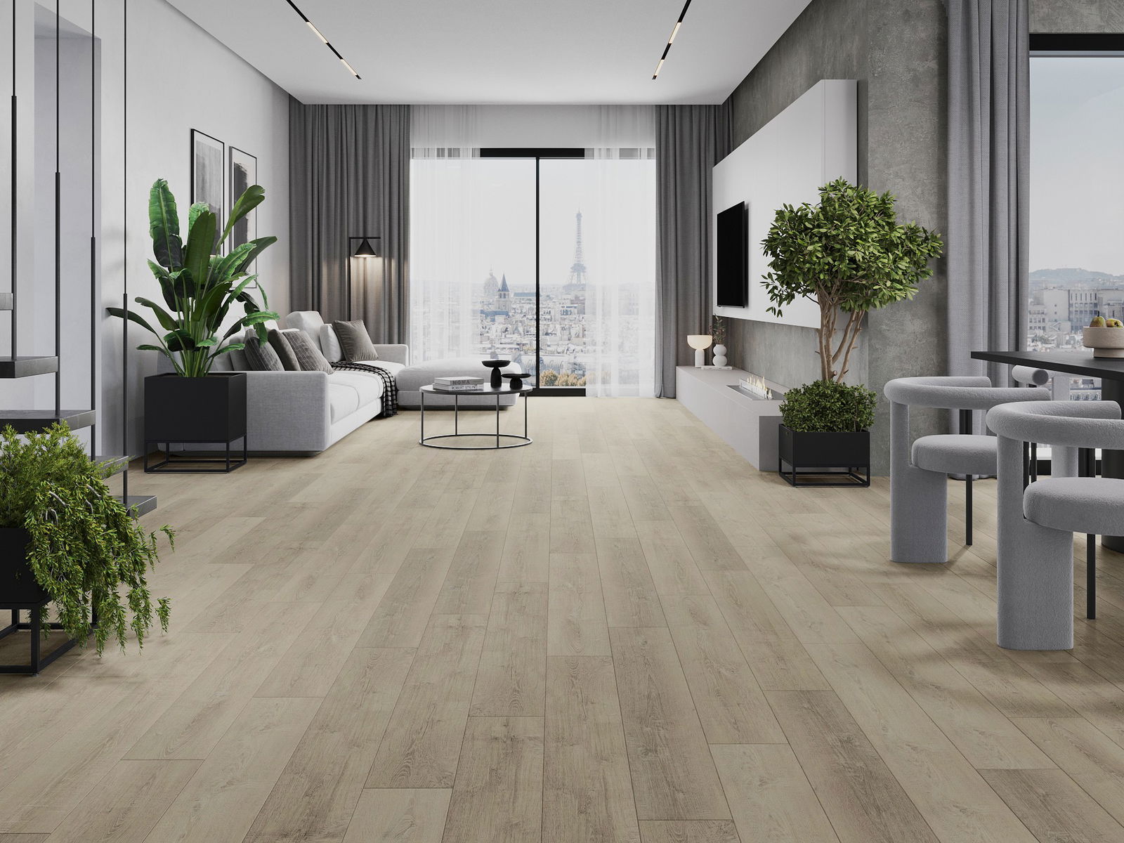 Panele posiadają 4-stronną fugę - każdy bok został wyfrezowany w taki sposób, by po ułożeniu powstało łączenie w kształcie litery V. Taki design sprawia, że podłoga nabiera wyraźniejszej struktury, co nadaje jej głębi i estetycznego charakteru. Efekt ten jest szczególnie ceniony w nowoczesnych aranżacjach, gdzie detale podkreślają wyjątkowy wygląd wnętrza.