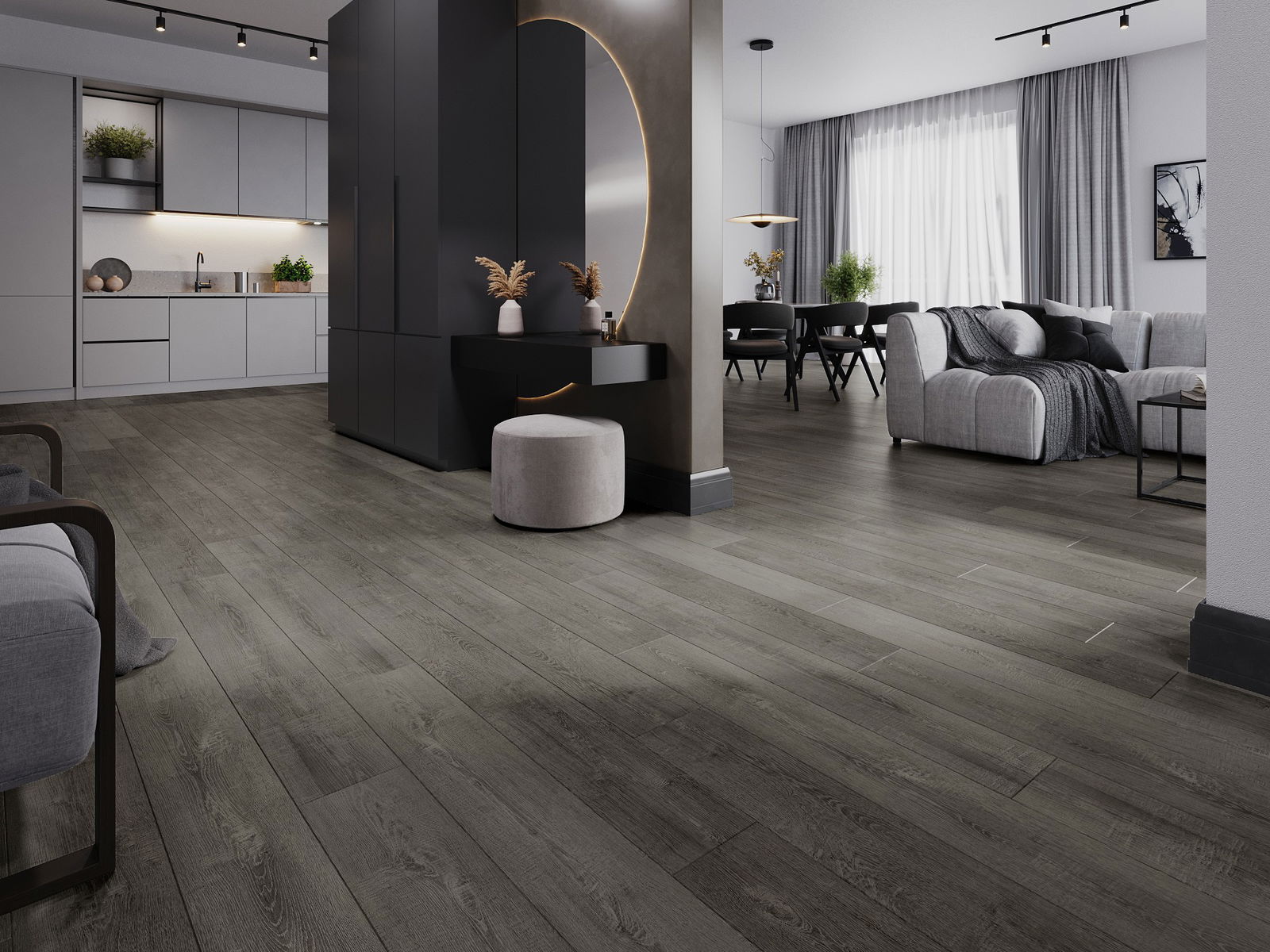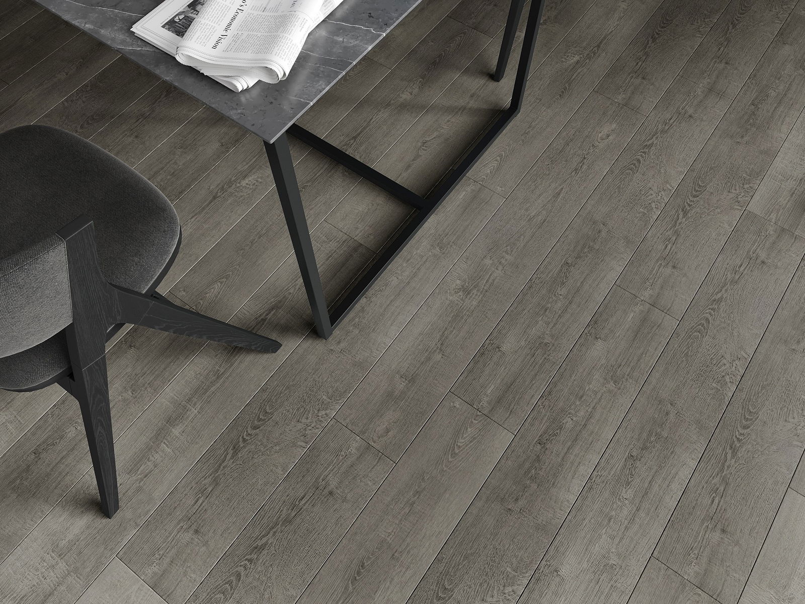 Panele posiadają 4-stronną fugę - każdy bok został wyfrezowany w taki sposób, by po ułożeniu powstało łączenie w kształcie litery V. Taki design sprawia, że podłoga nabiera wyraźniejszej struktury, co nadaje jej głębi i estetycznego charakteru. Efekt ten jest szczególnie ceniony w nowoczesnych aranżacjach, gdzie detale podkreślają wyjątkowy wygląd wnętrza.
