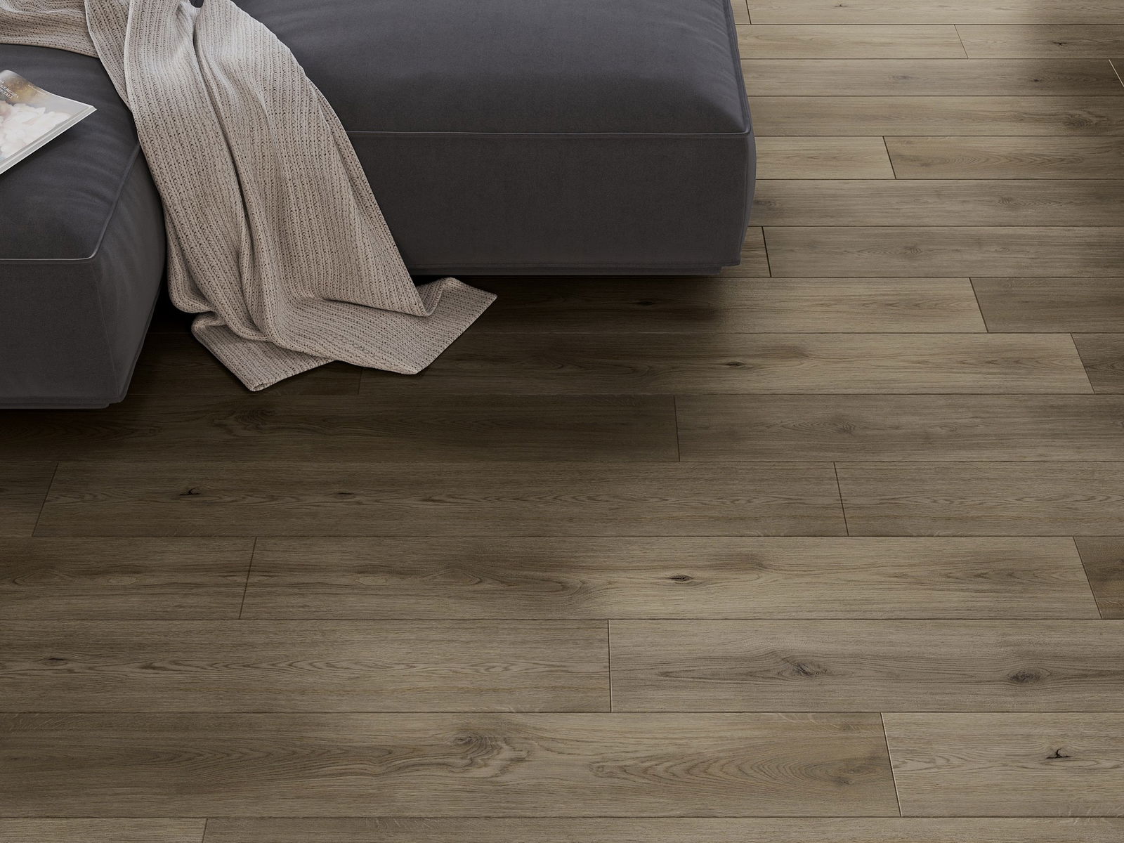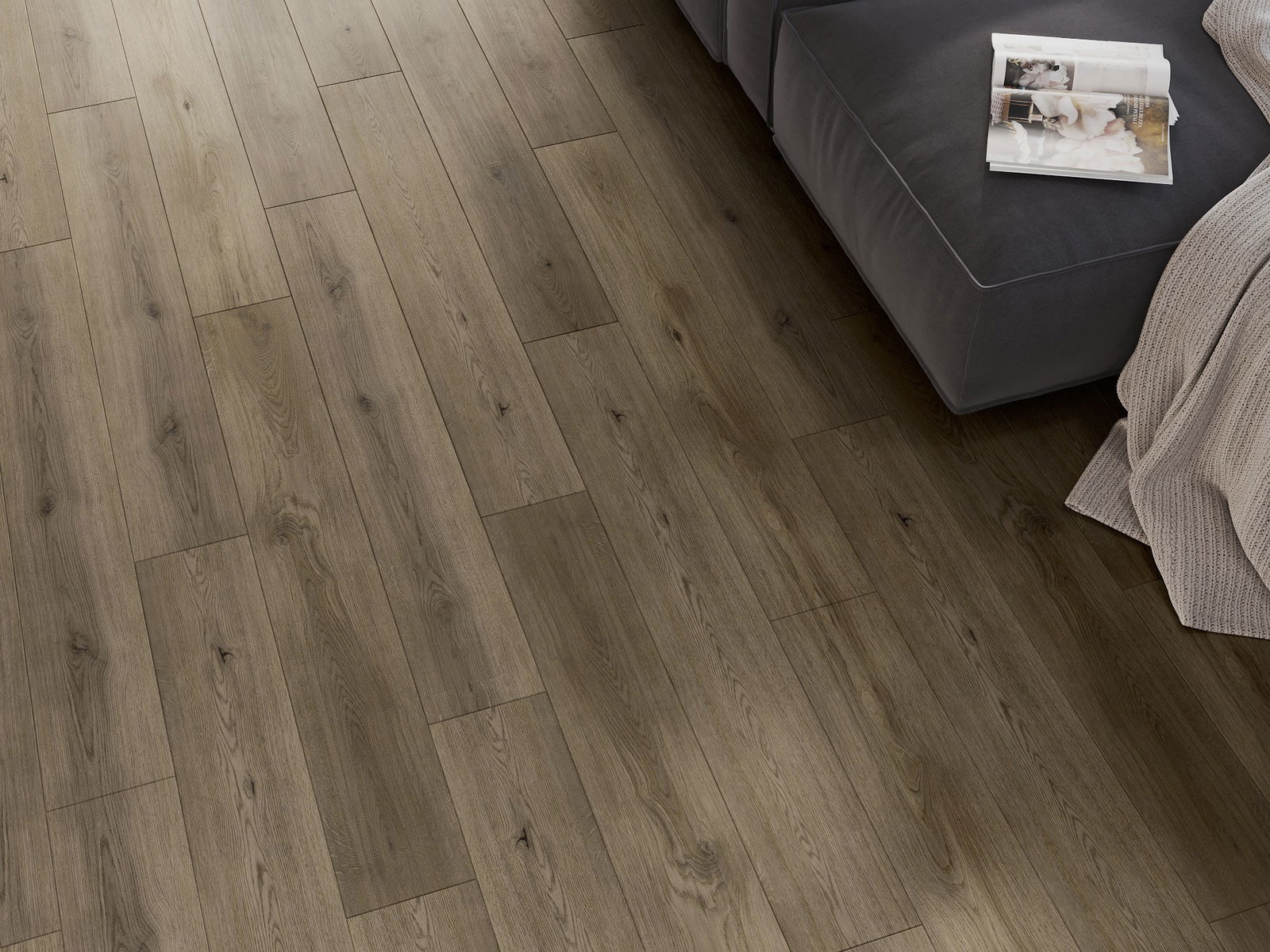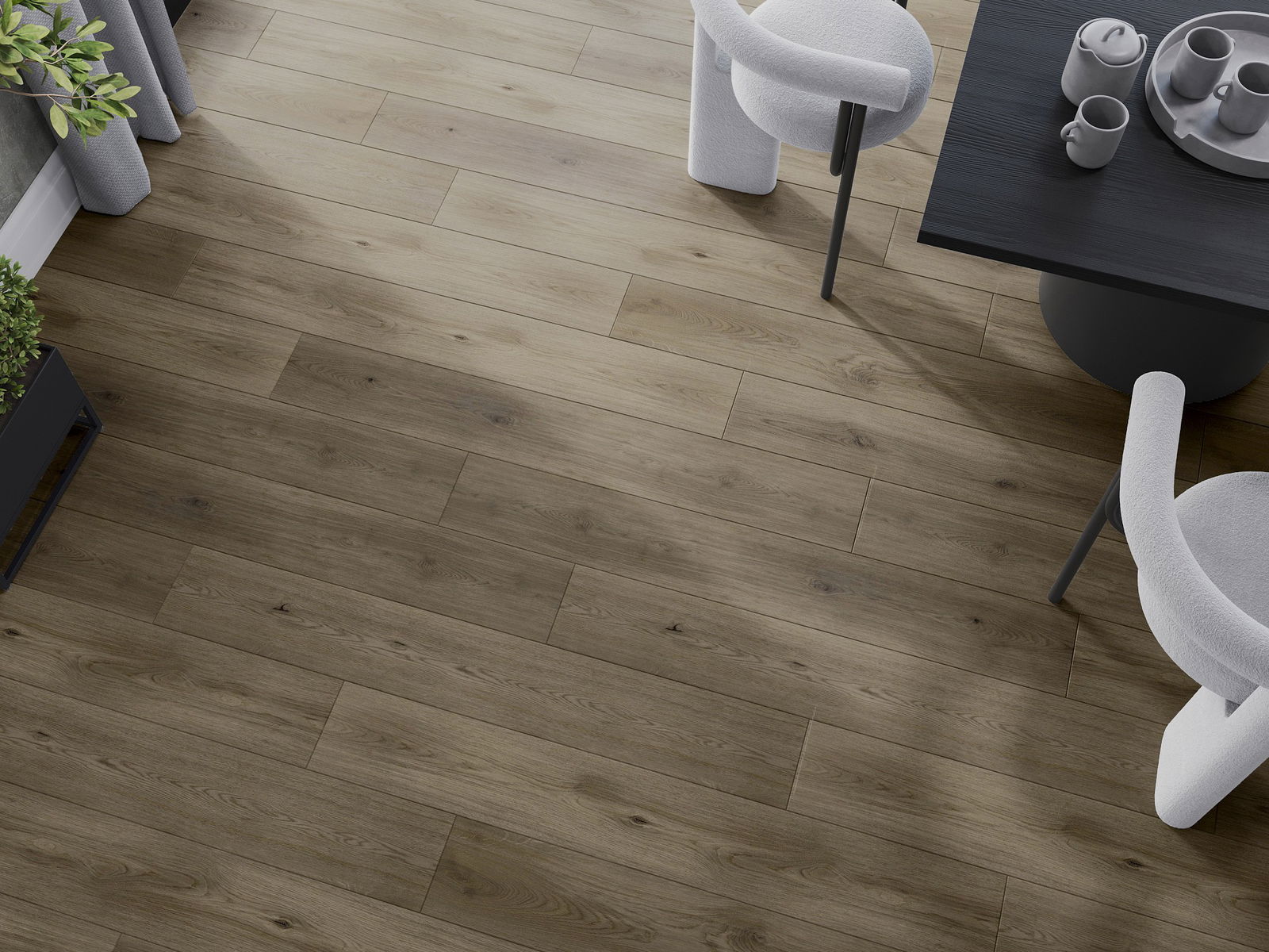 Panele posiadają 4-stronną fugę - każdy bok został wyfrezowany w taki sposób, by po ułożeniu powstało łączenie w kształcie litery V. Taki design sprawia, że podłoga nabiera wyraźniejszej struktury, co nadaje jej głębi i estetycznego charakteru. Efekt ten jest szczególnie ceniony w nowoczesnych aranżacjach, gdzie detale podkreślają wyjątkowy wygląd wnętrza.