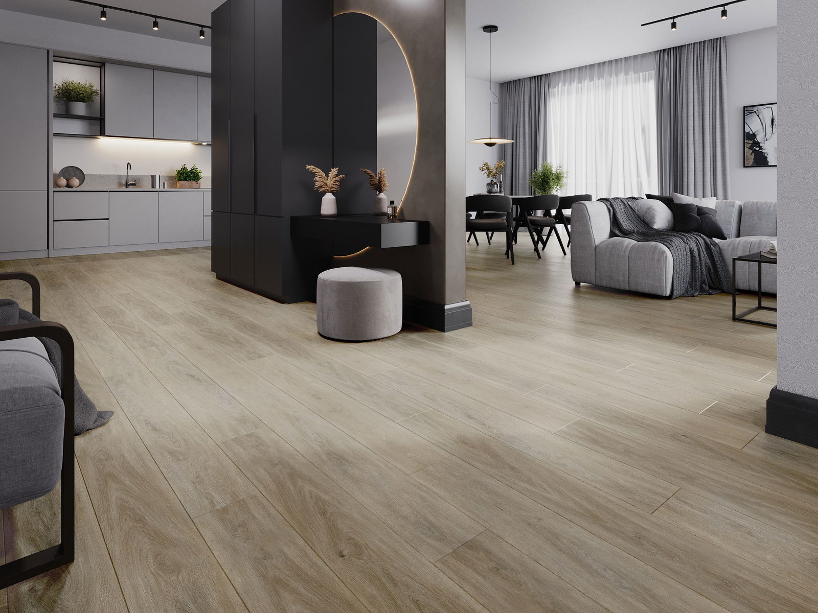 Panel wyróżnia się subtelnymi słojami oraz tłoczeniami, które doskonale imitują wybrany gatunek drewna. Dzięki temu efektowi, pomieszczenie nabiera eleganckiego, a jednocześnie naturalnego i przytulnego charakteru.