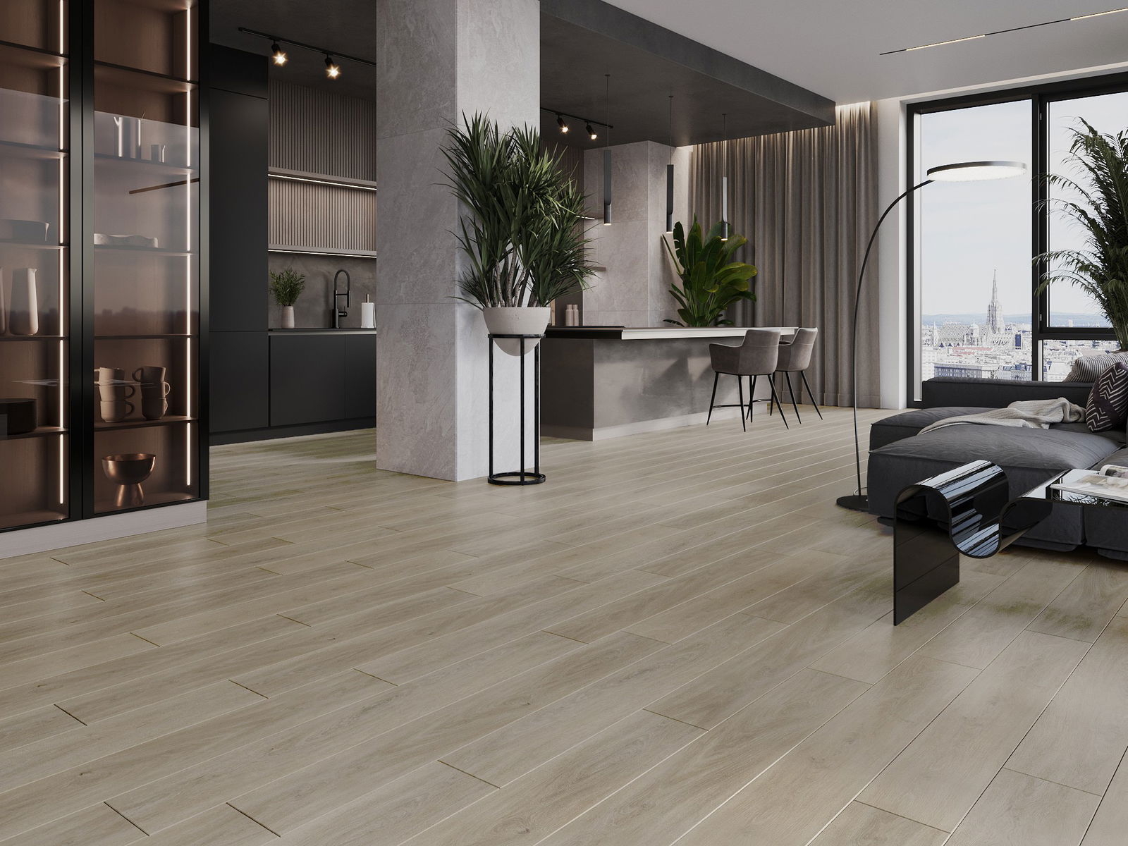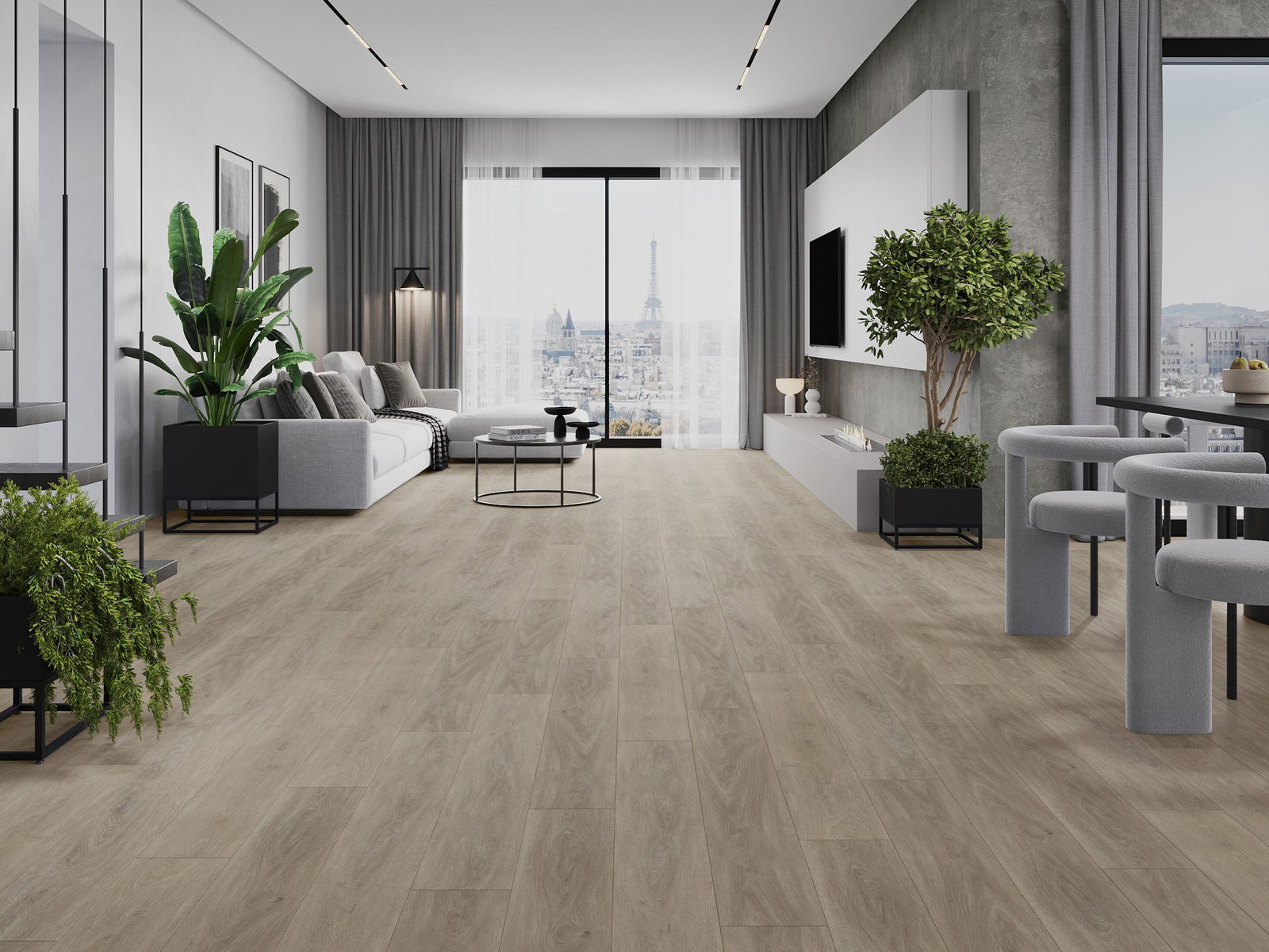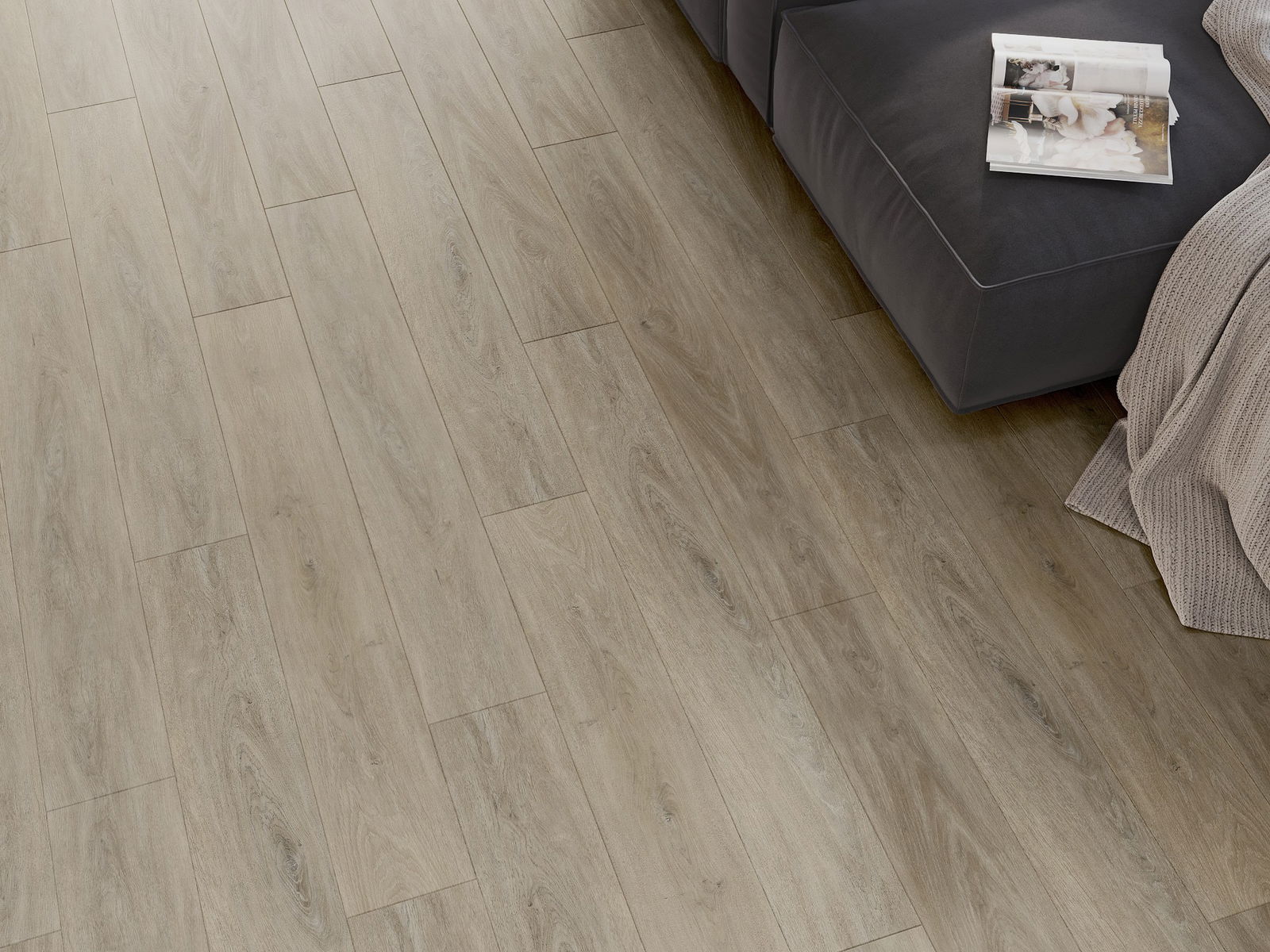 Panele posiadają 4-stronną fugę - każdy bok został wyfrezowany w taki sposób, by po ułożeniu powstało łączenie w kształcie litery V. Taki design sprawia, że podłoga nabiera wyraźniejszej struktury, co nadaje jej głębi i estetycznego charakteru. Efekt ten jest szczególnie ceniony w nowoczesnych aranżacjach, gdzie detale podkreślają wyjątkowy wygląd wnętrza.