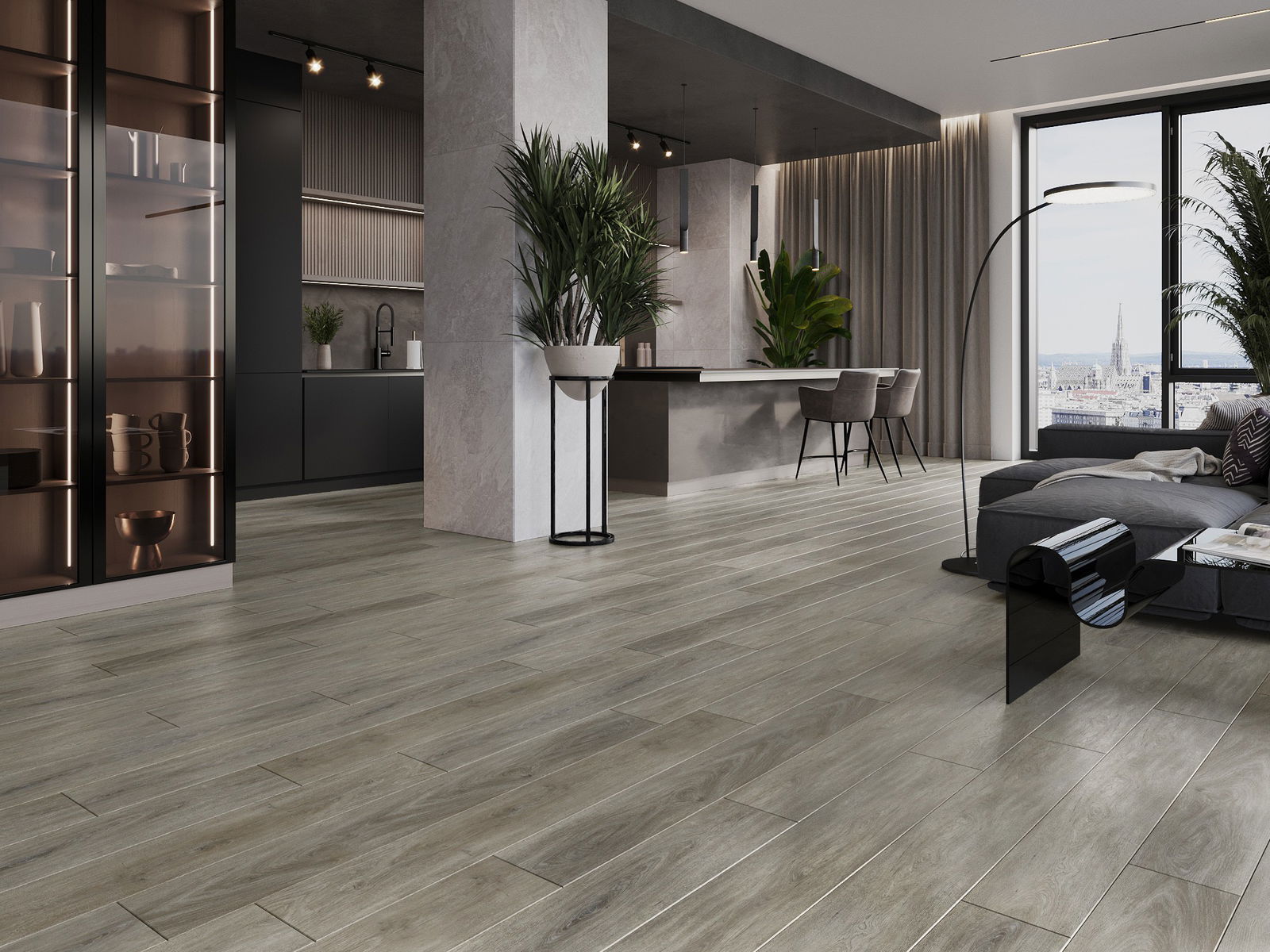 Panele posiadają 4-stronną fugę - każdy bok został wyfrezowany w taki sposób, by po ułożeniu powstało łączenie w kształcie litery V. Taki design sprawia, że podłoga nabiera wyraźniejszej struktury, co nadaje jej głębi i estetycznego charakteru. Efekt ten jest szczególnie ceniony w nowoczesnych aranżacjach, gdzie detale podkreślają wyjątkowy wygląd wnętrza.