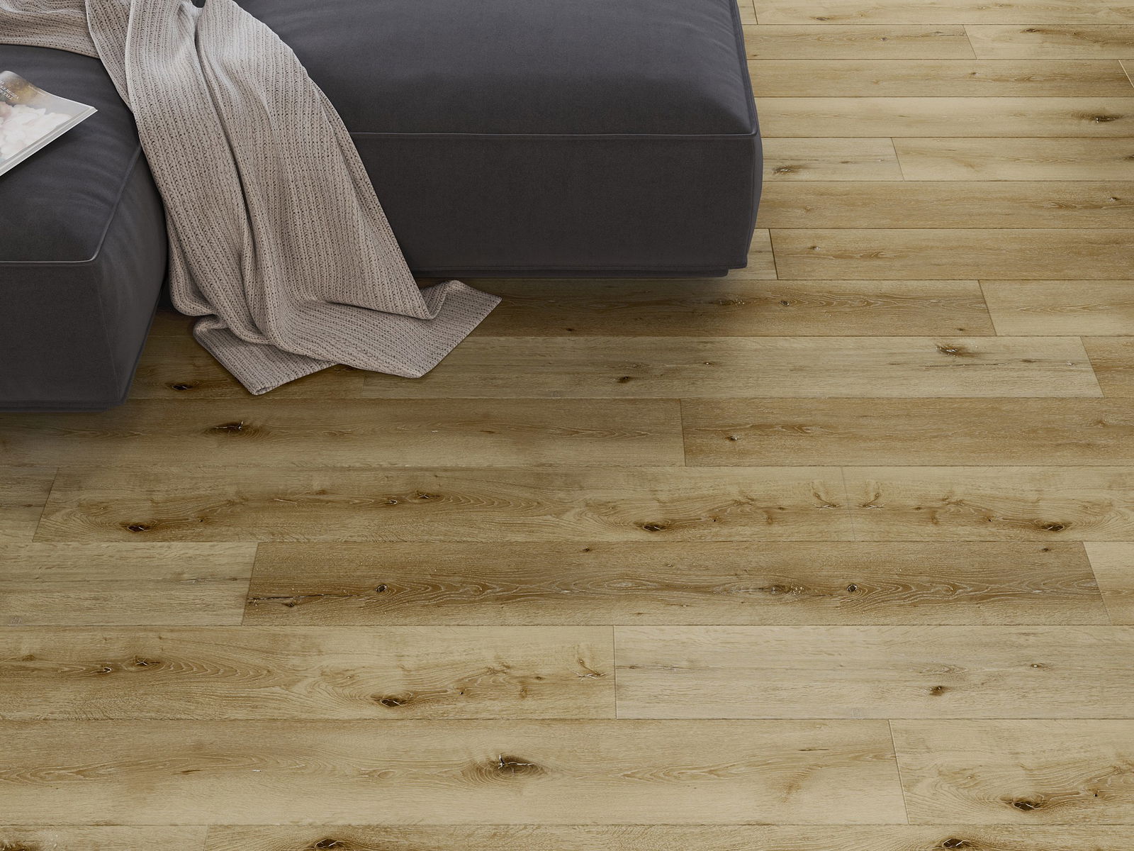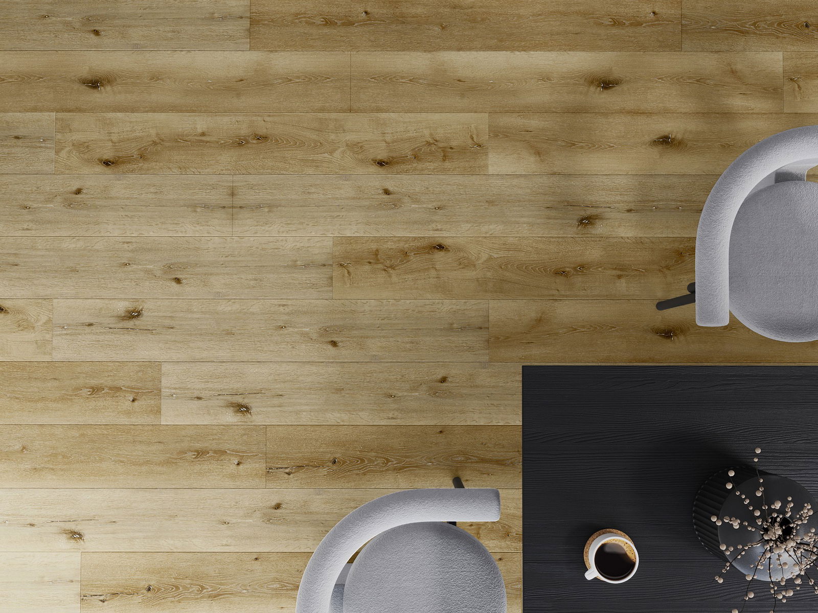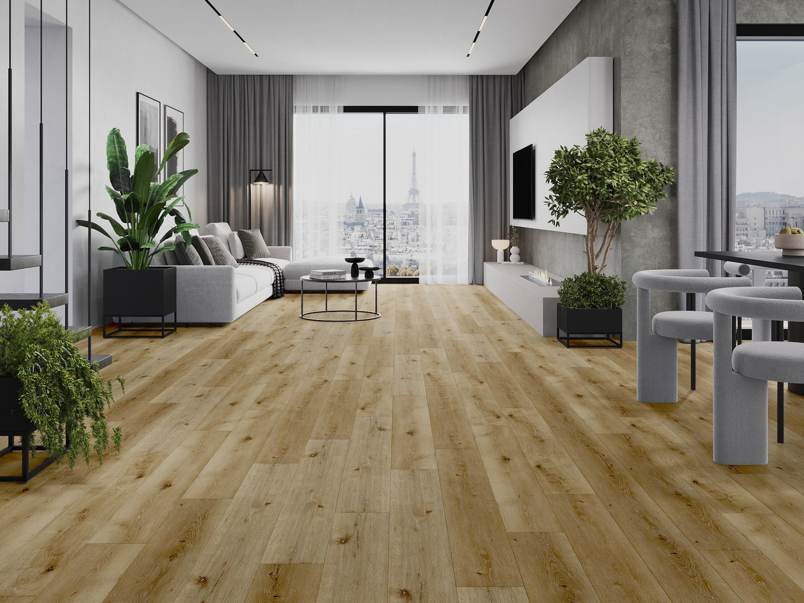 Panele posiadają 4-stronną fugę - każdy bok został wyfrezowany w taki sposób, by po ułożeniu powstało łączenie w kształcie litery V. Taki design sprawia, że podłoga nabiera wyraźniejszej struktury, co nadaje jej głębi i estetycznego charakteru. Efekt ten jest szczególnie ceniony w nowoczesnych aranżacjach, gdzie detale podkreślają wyjątkowy wygląd wnętrza.