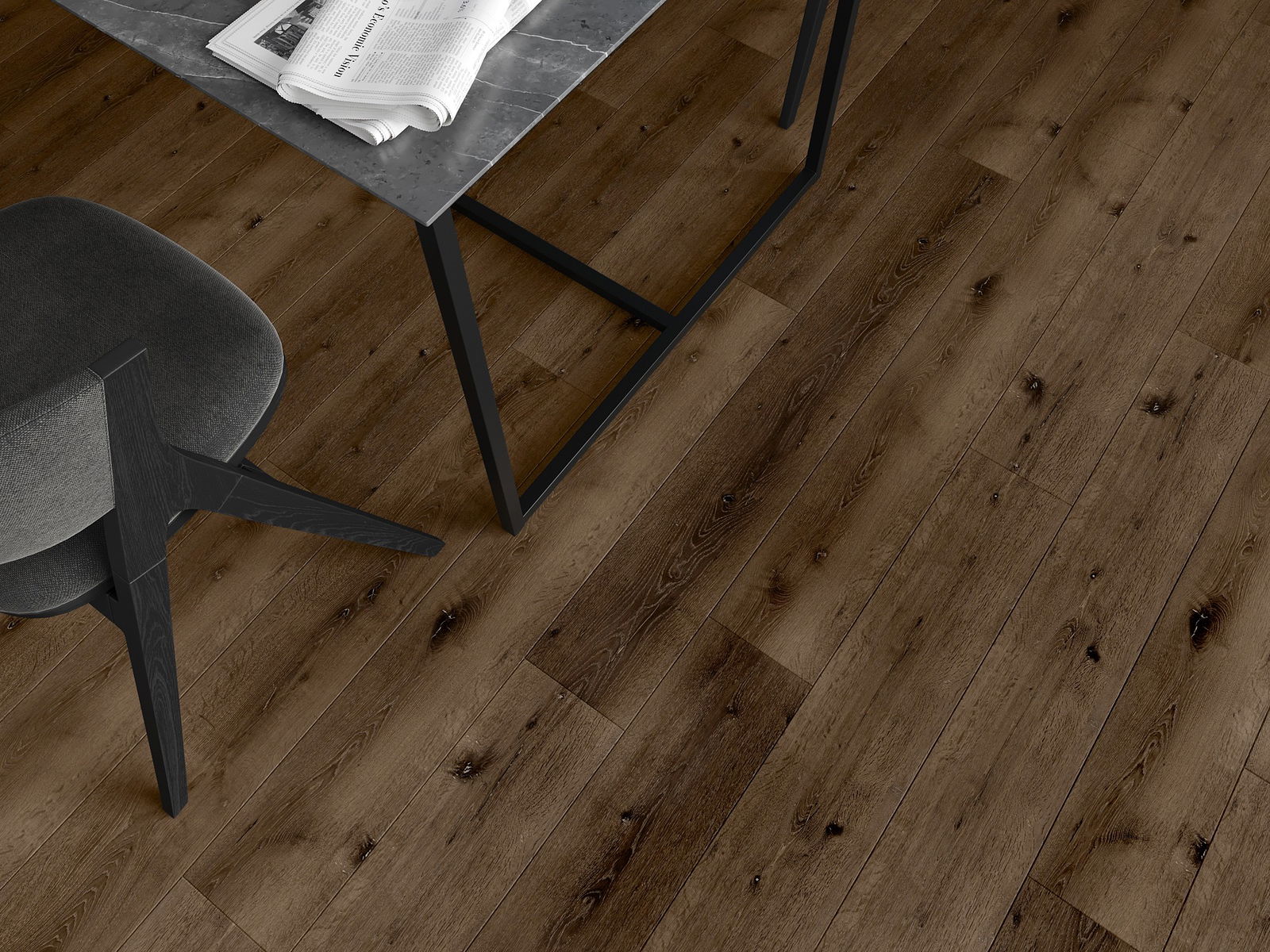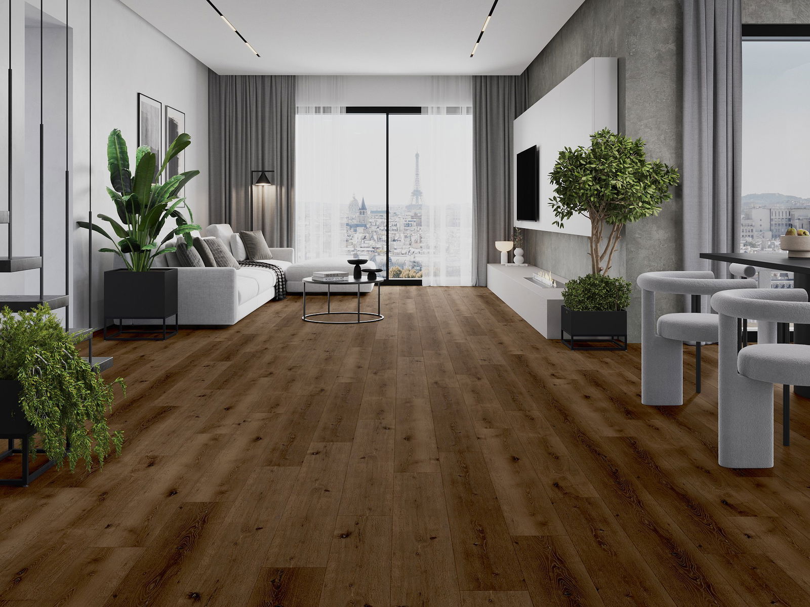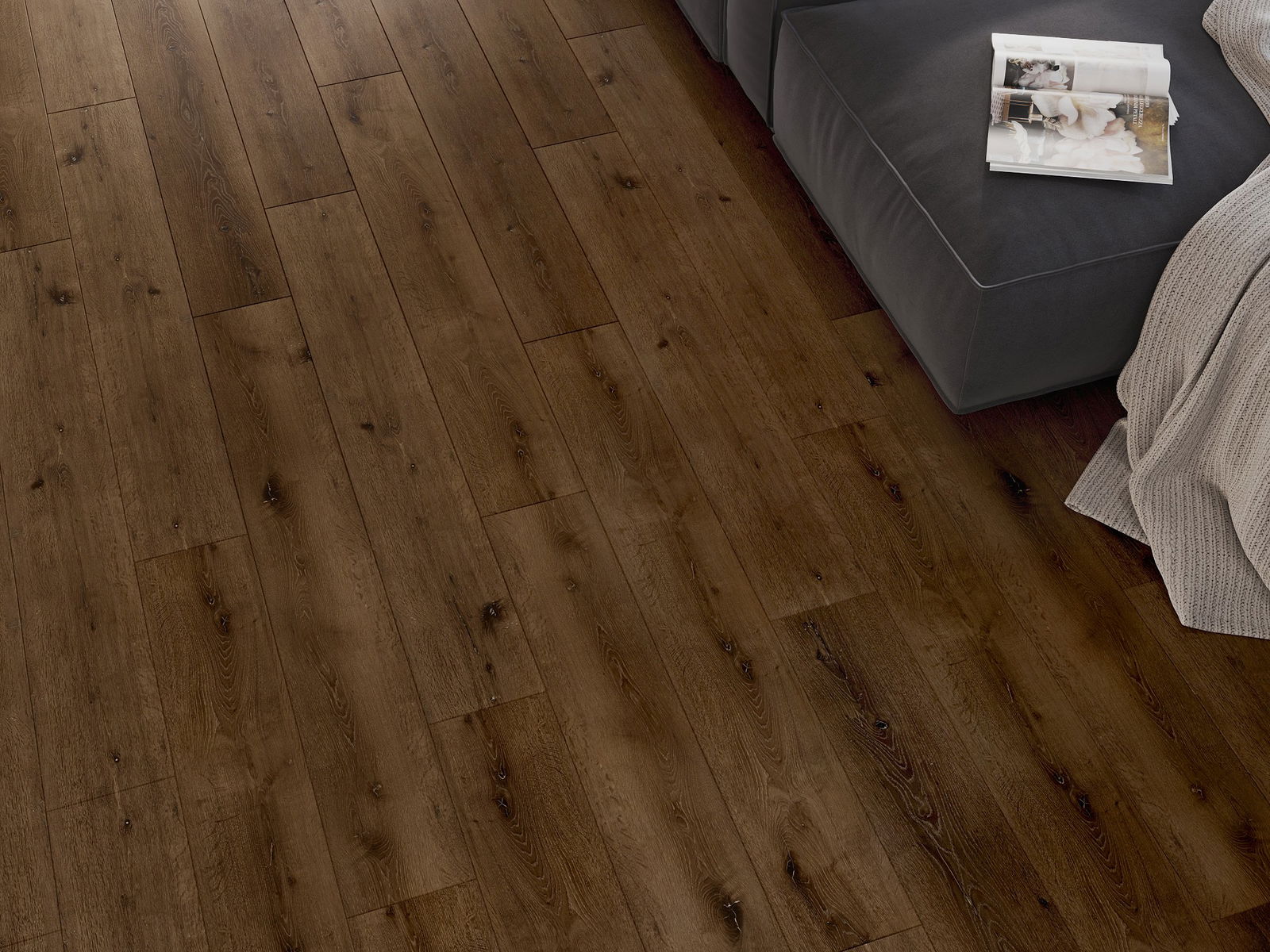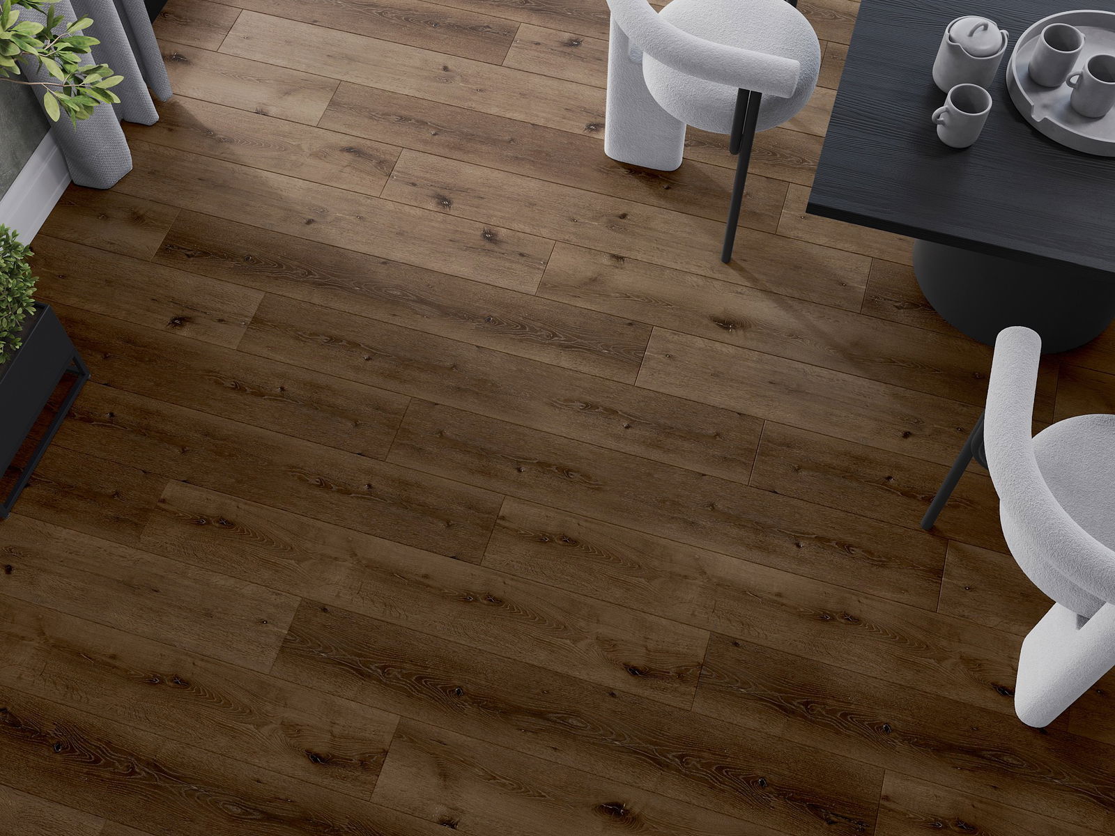 Panele posiadają 4-stronną fugę - każdy bok został wyfrezowany w taki sposób, by po ułożeniu powstało łączenie w kształcie litery V. Taki design sprawia, że podłoga nabiera wyraźniejszej struktury, co nadaje jej głębi i estetycznego charakteru. Efekt ten jest szczególnie ceniony w nowoczesnych aranżacjach, gdzie detale podkreślają wyjątkowy wygląd wnętrza.