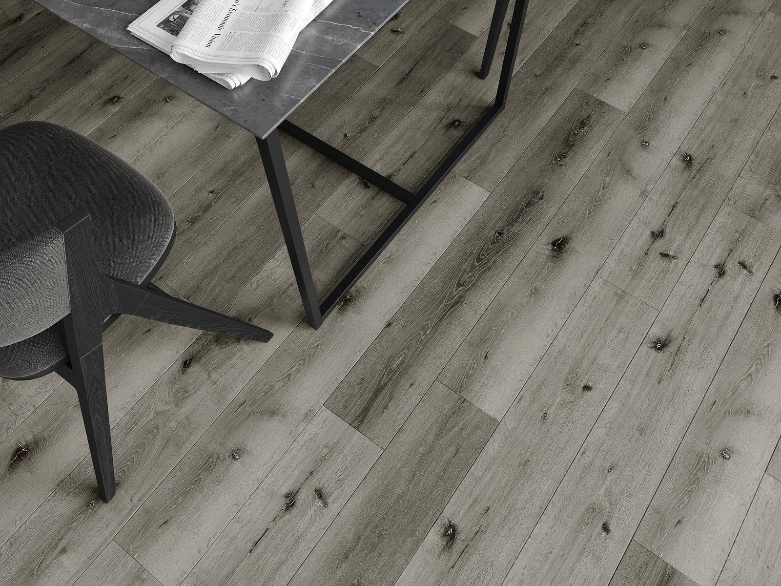 Panele posiadają 4-stronną fugę - każdy bok został wyfrezowany w taki sposób, by po ułożeniu powstało łączenie w kształcie litery V. Taki design sprawia, że podłoga nabiera wyraźniejszej struktury, co nadaje jej głębi i estetycznego charakteru. Efekt ten jest szczególnie ceniony w nowoczesnych aranżacjach, gdzie detale podkreślają wyjątkowy wygląd wnętrza.