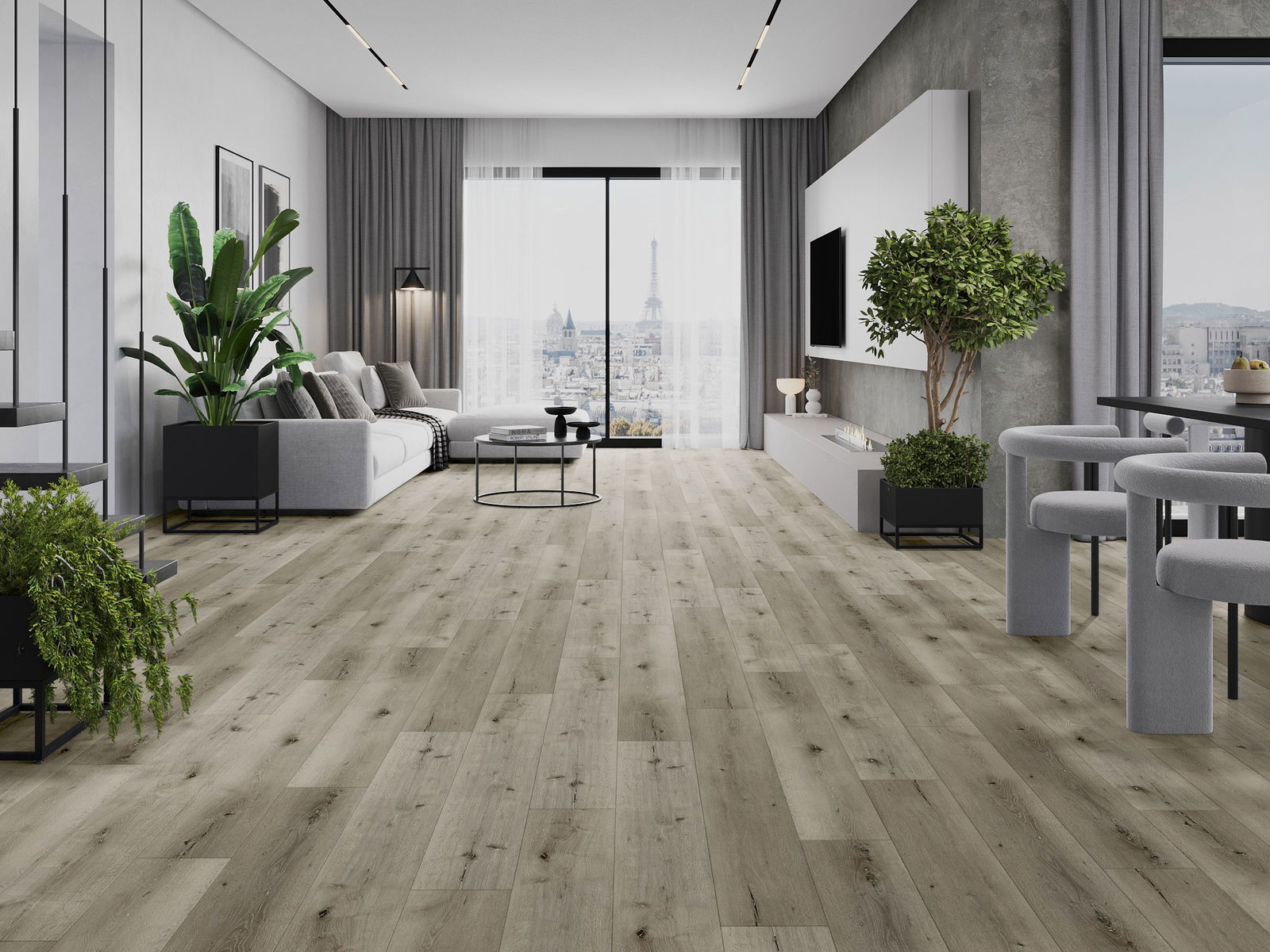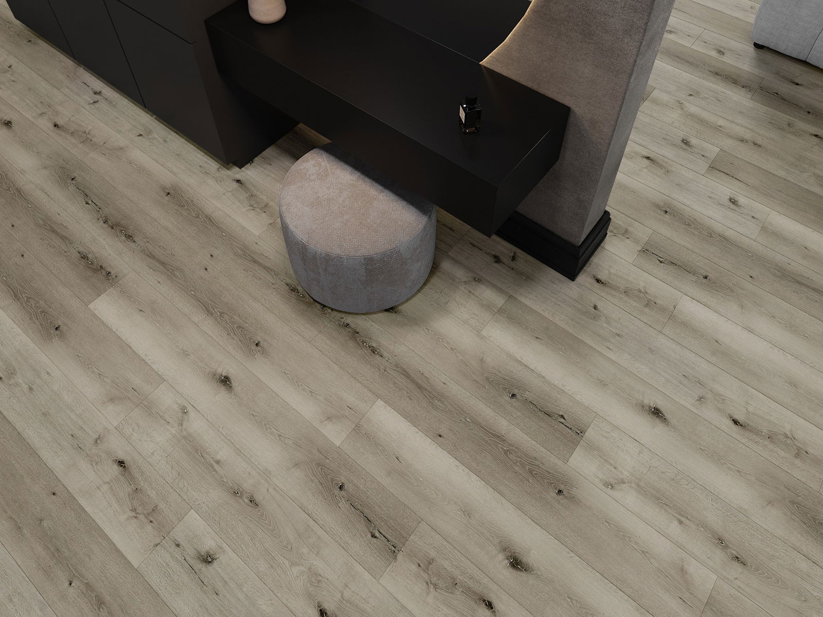 Panele posiadają 4-stronną fugę - każdy bok został wyfrezowany w taki sposób, by po ułożeniu powstało łączenie w kształcie litery V. Taki design sprawia, że podłoga nabiera wyraźniejszej struktury, co nadaje jej głębi i estetycznego charakteru. Efekt ten jest szczególnie ceniony w nowoczesnych aranżacjach, gdzie detale podkreślają wyjątkowy wygląd wnętrza.