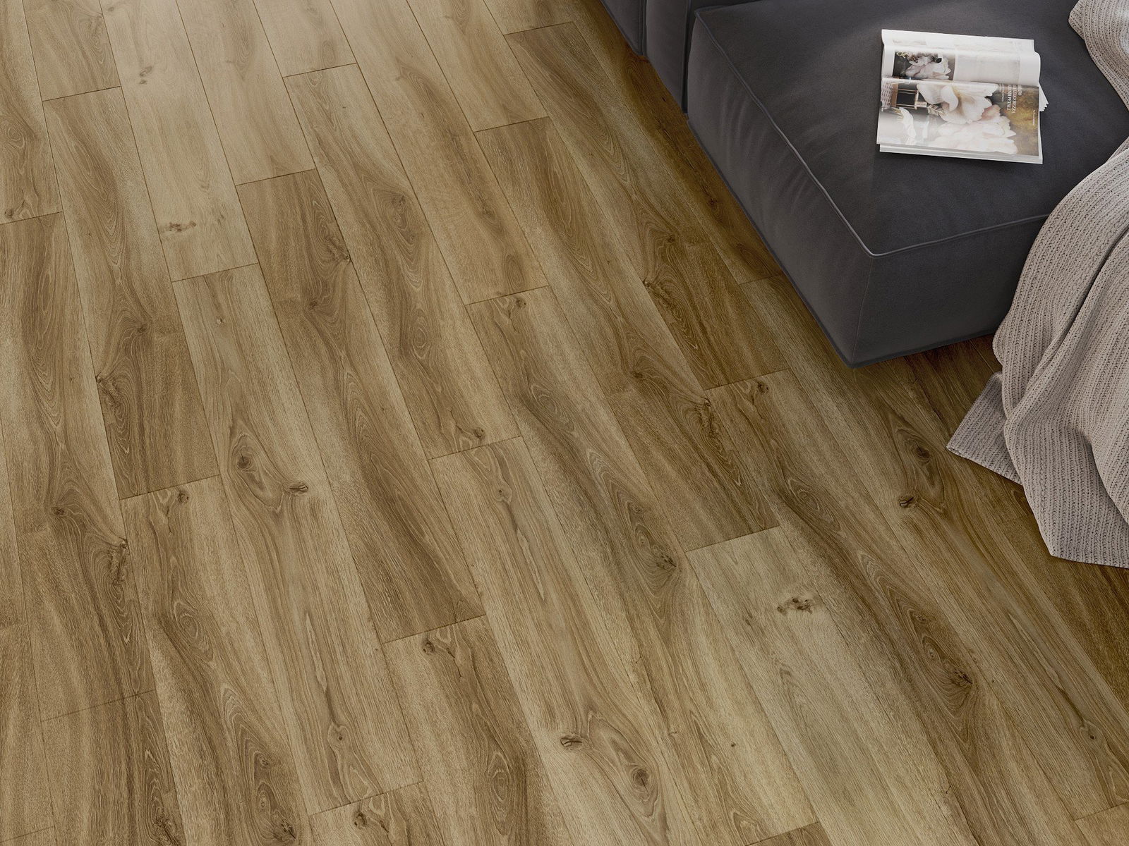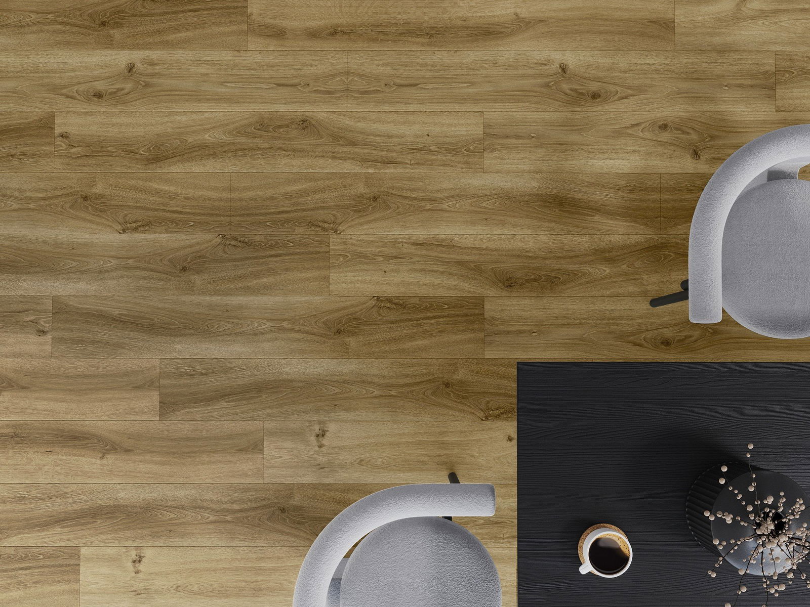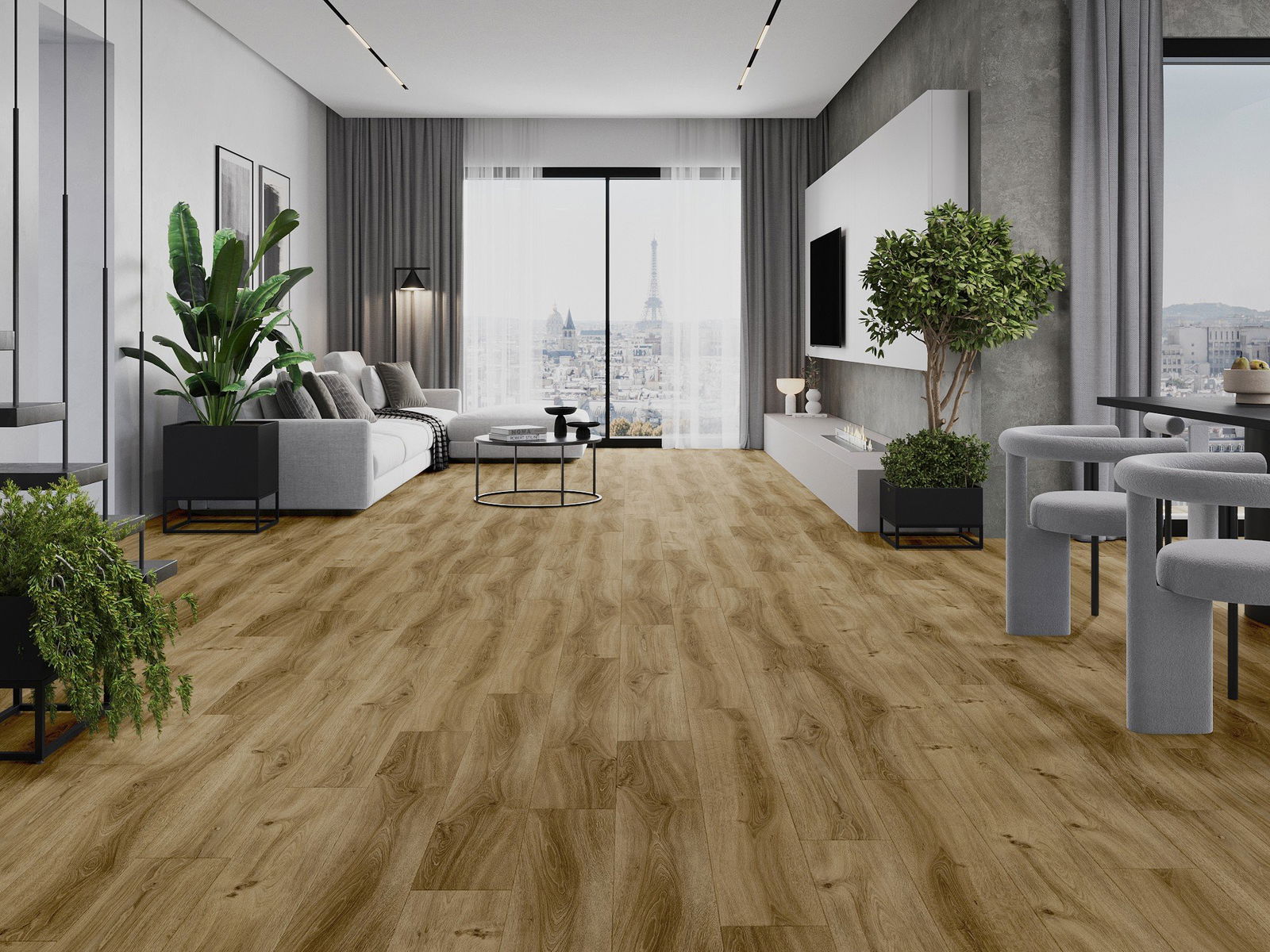 Panele posiadają 4-stronną fugę - każdy bok został wyfrezowany w taki sposób, by po ułożeniu powstało łączenie w kształcie litery V. Taki design sprawia, że podłoga nabiera wyraźniejszej struktury, co nadaje jej głębi i estetycznego charakteru. Efekt ten jest szczególnie ceniony w nowoczesnych aranżacjach, gdzie detale podkreślają wyjątkowy wygląd wnętrza.