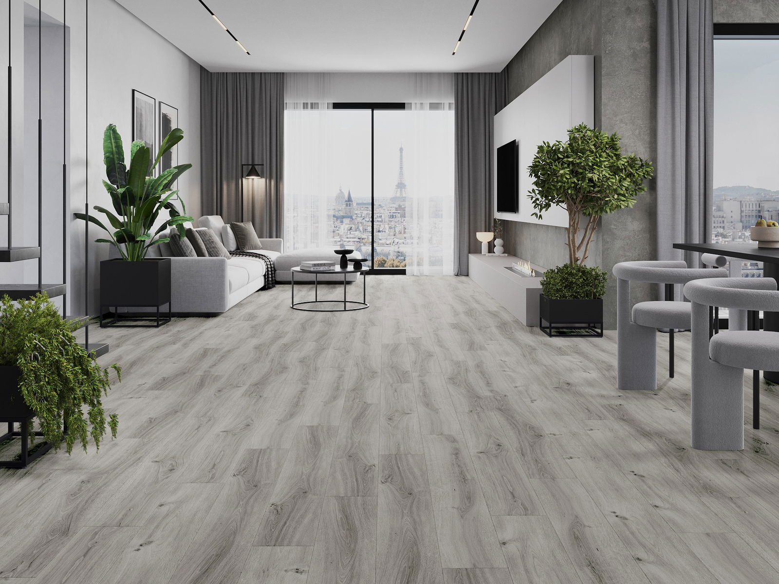 Panele posiadają 4-stronną fugę - każdy bok został wyfrezowany w taki sposób, by po ułożeniu powstało łączenie w kształcie litery V. Taki design sprawia, że podłoga nabiera wyraźniejszej struktury, co nadaje jej głębi i estetycznego charakteru. Efekt ten jest szczególnie ceniony w nowoczesnych aranżacjach, gdzie detale podkreślają wyjątkowy wygląd wnętrza.