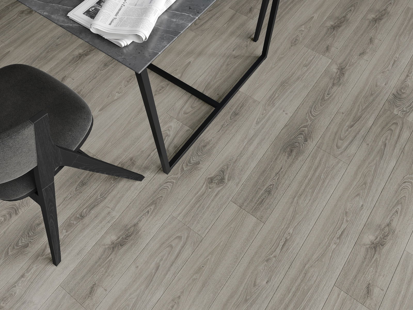 Panele posiadają 4-stronną fugę - każdy bok został wyfrezowany w taki sposób, by po ułożeniu powstało łączenie w kształcie litery V. Taki design sprawia, że podłoga nabiera wyraźniejszej struktury, co nadaje jej głębi i estetycznego charakteru. Efekt ten jest szczególnie ceniony w nowoczesnych aranżacjach, gdzie detale podkreślają wyjątkowy wygląd wnętrza.