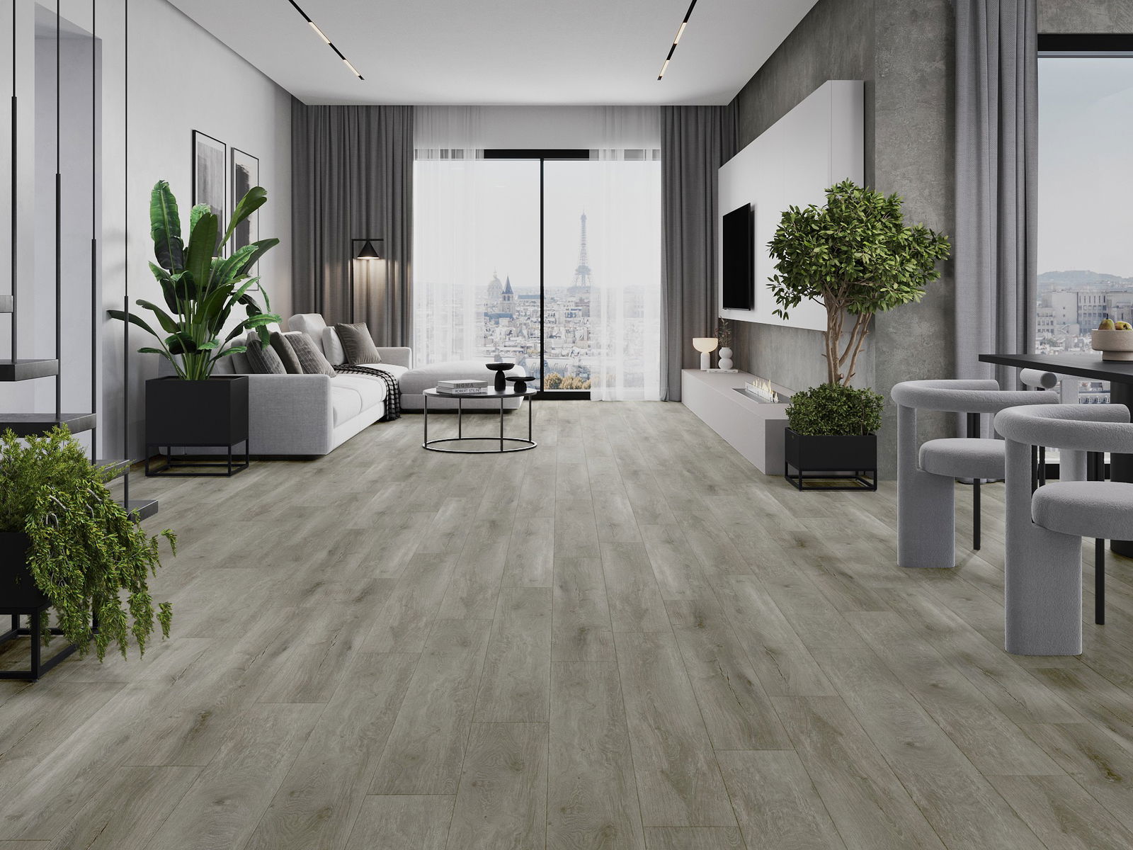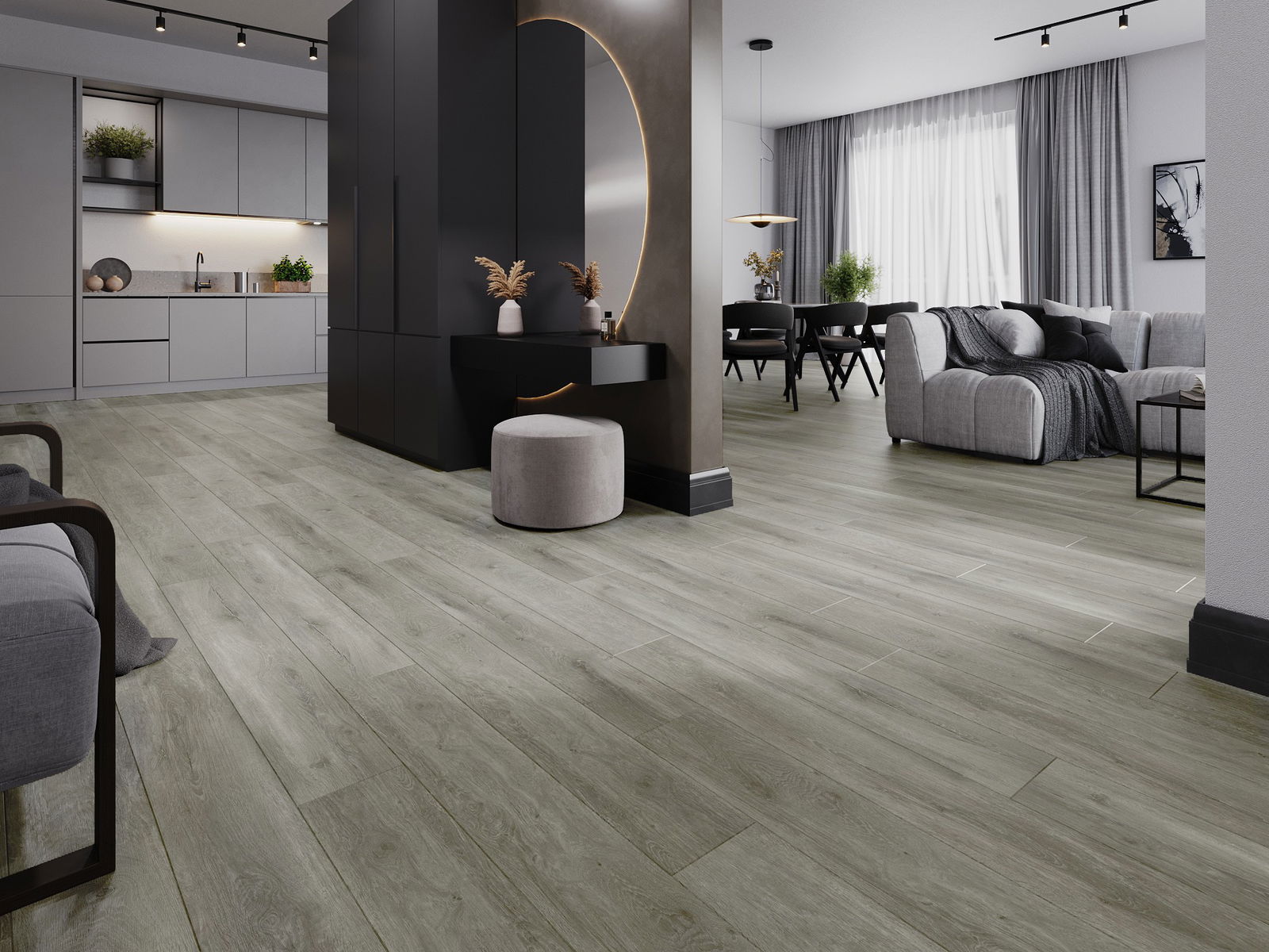 Panele posiadają 4-stronną fugę - każdy bok został wyfrezowany w taki sposób, by po ułożeniu powstało łączenie w kształcie litery V. Taki design sprawia, że podłoga nabiera wyraźniejszej struktury, co nadaje jej głębi i estetycznego charakteru. Efekt ten jest szczególnie ceniony w nowoczesnych aranżacjach, gdzie detale podkreślają wyjątkowy wygląd wnętrza.