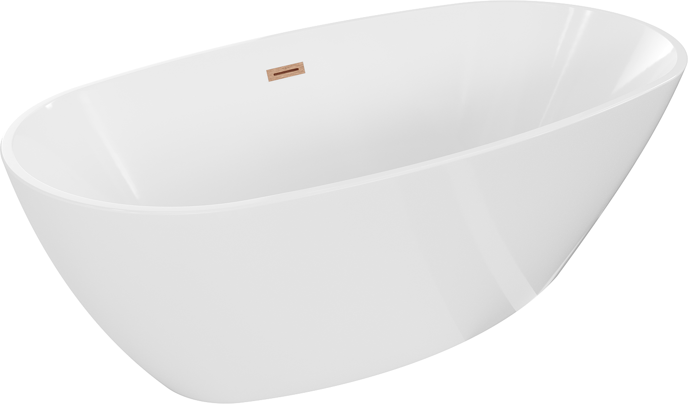 Mexen Eris wanna wolnostojąca 180 x 95 cm, biała, przelew miedź szczotkowana - 53441809500-65