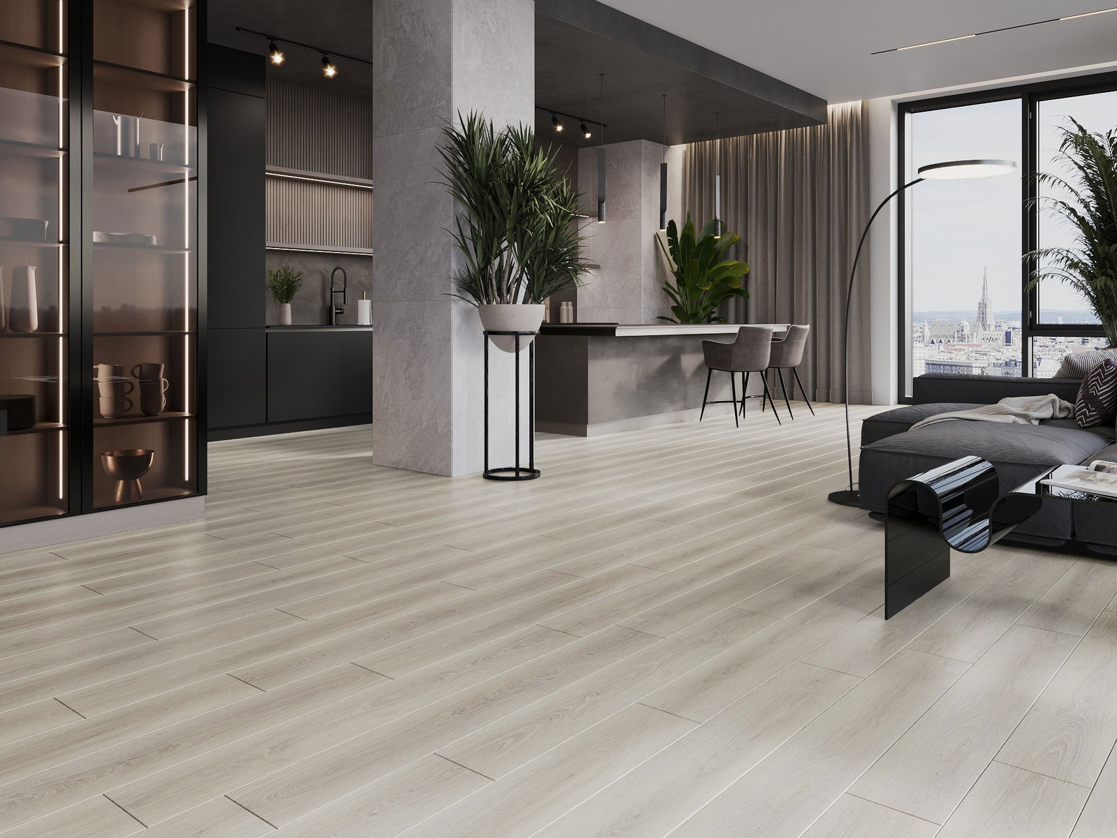 Panele posiadają 4-stronną fugę - każdy bok został wyfrezowany w taki sposób, by po ułożeniu powstało łączenie w kształcie litery V. Taki design sprawia, że podłoga nabiera wyraźniejszej struktury, co nadaje jej głębi i estetycznego charakteru. Efekt ten jest szczególnie ceniony w nowoczesnych aranżacjach, gdzie detale podkreślają wyjątkowy wygląd wnętrza.