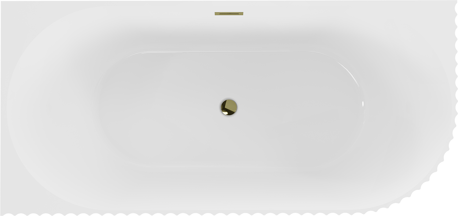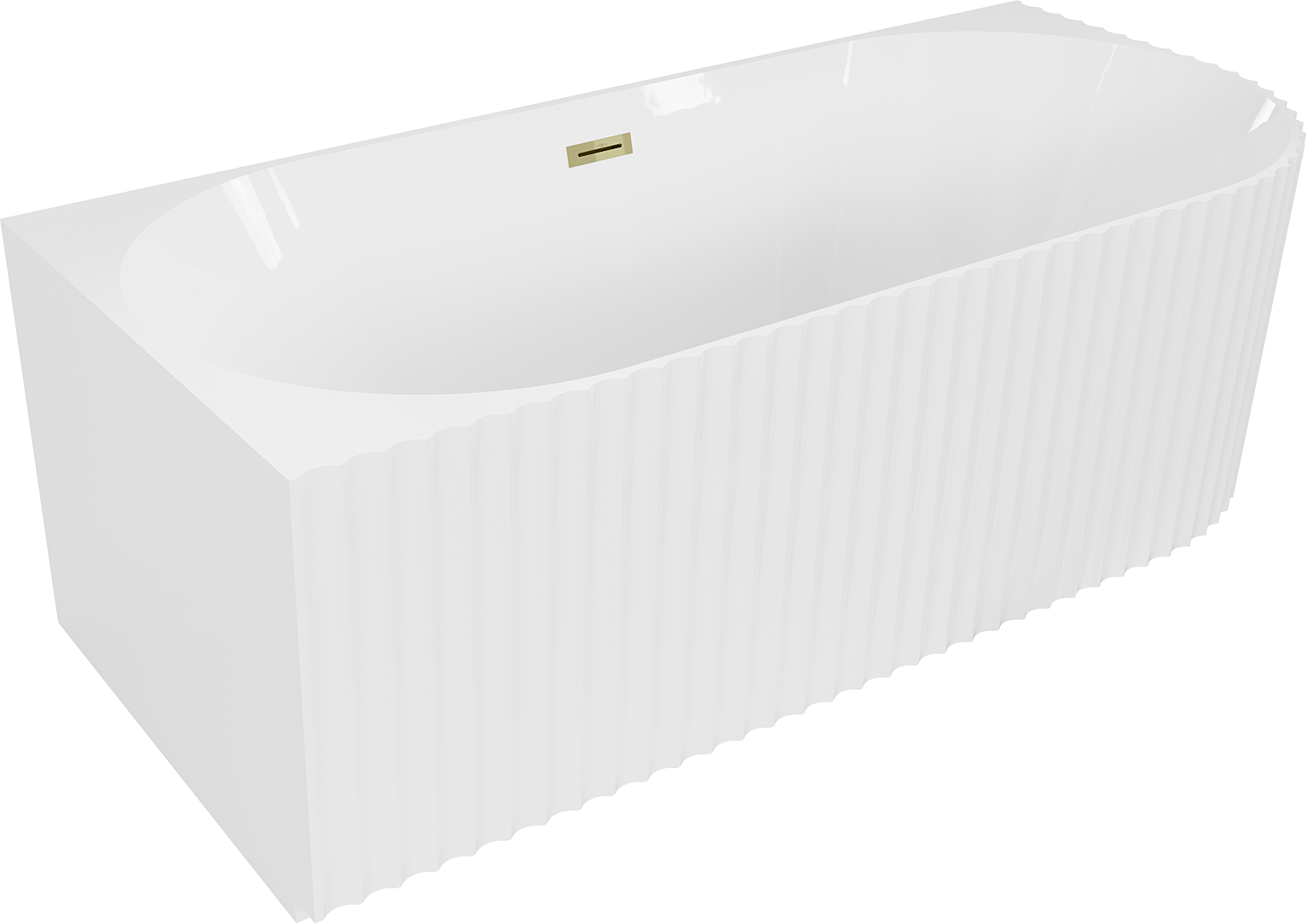 Mexen Gia wanna wolnostojąca narożna ryflowana lewa 150 x 75 cm, biała połysk, przelew złoty - 52701507500L-50