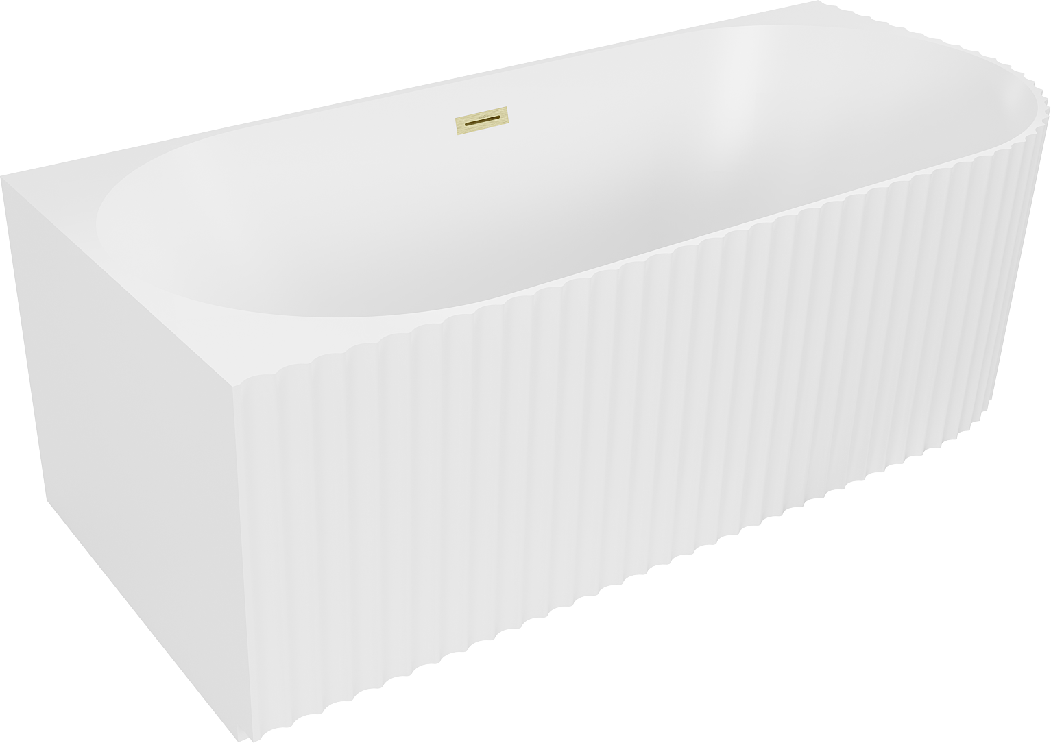 Mexen Gia wanna wolnostojąca narożna ryflowana lewa 150 x 75 cm, biała mat, przelew złoty szczotkowany - 52701507501L-55