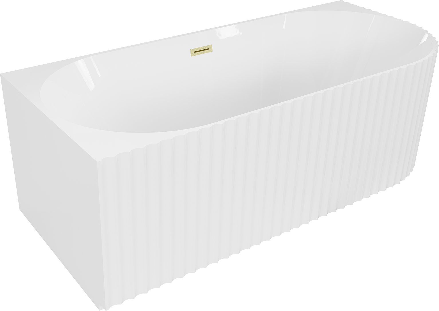 Mexen Gia wanna wolnostojąca narożna ryflowana lewa 170 x 80 cm, biała połysk, przelew złoty szczotkowany - 52701708000L-55