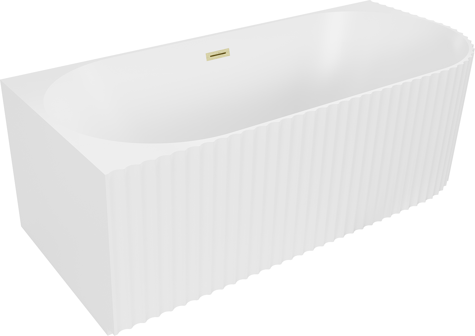 Mexen Gia wanna wolnostojąca narożna ryflowana lewa 170 x 80 cm, biała mat, przelew złoty szczotkowany - 52701708001L-55