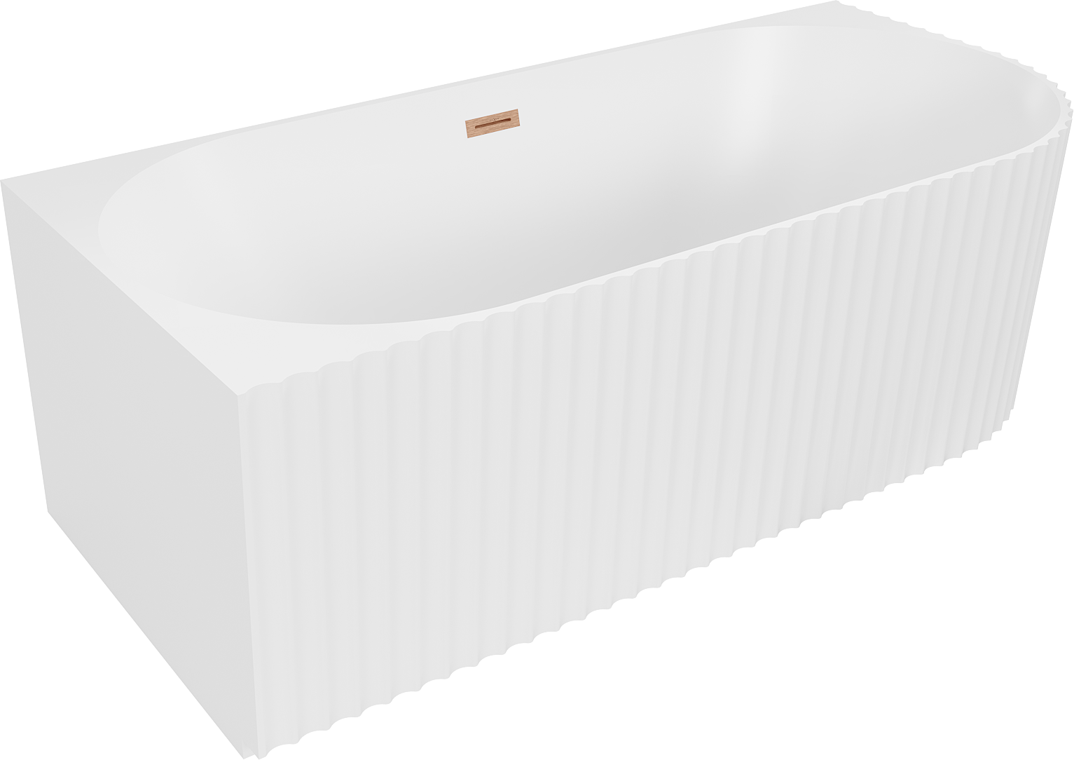 Mexen Gia wanna wolnostojąca narożna ryflowana lewa 170 x 80 cm, biała mat, przelew miedź szczotkowana - 52701708001L-65