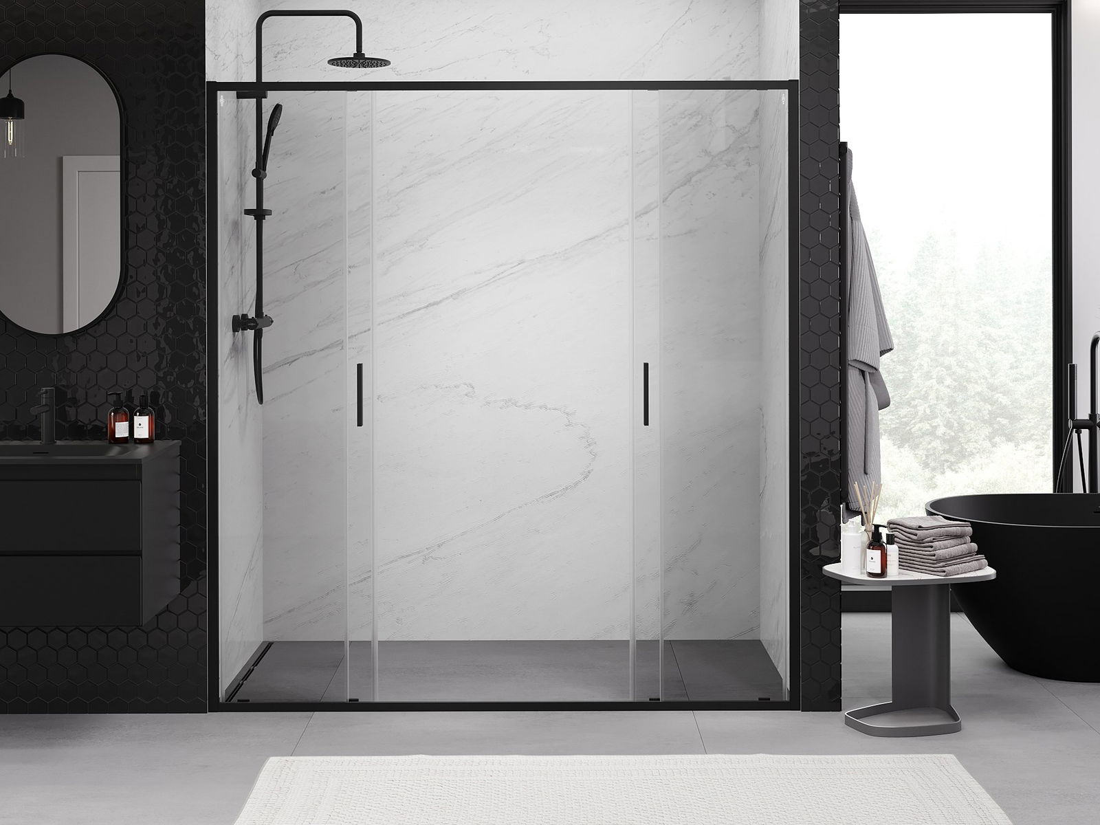Mexen Exo drzwi prysznicowe podwójne rozsuwane 170 cm, transparent, czarne - 8152-170-000-70-00