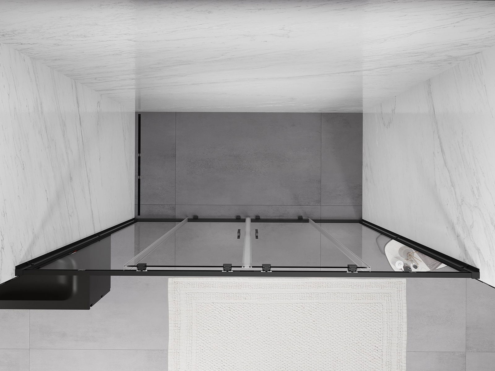Poręczny i wygodny uchwyt został wykonany z trwałego i odpornego metalu. Modny kształt w połączeniu z wykończeniem dopasowanym do koloru profili nadaje całości nowoczesnego i stylowego wyglądu, podkreślając estetykę każdej łazienki.