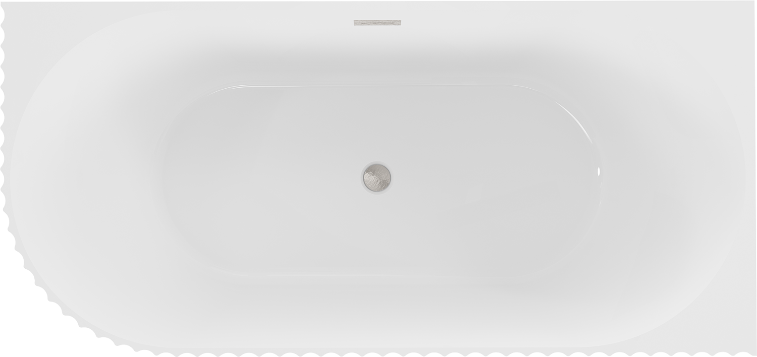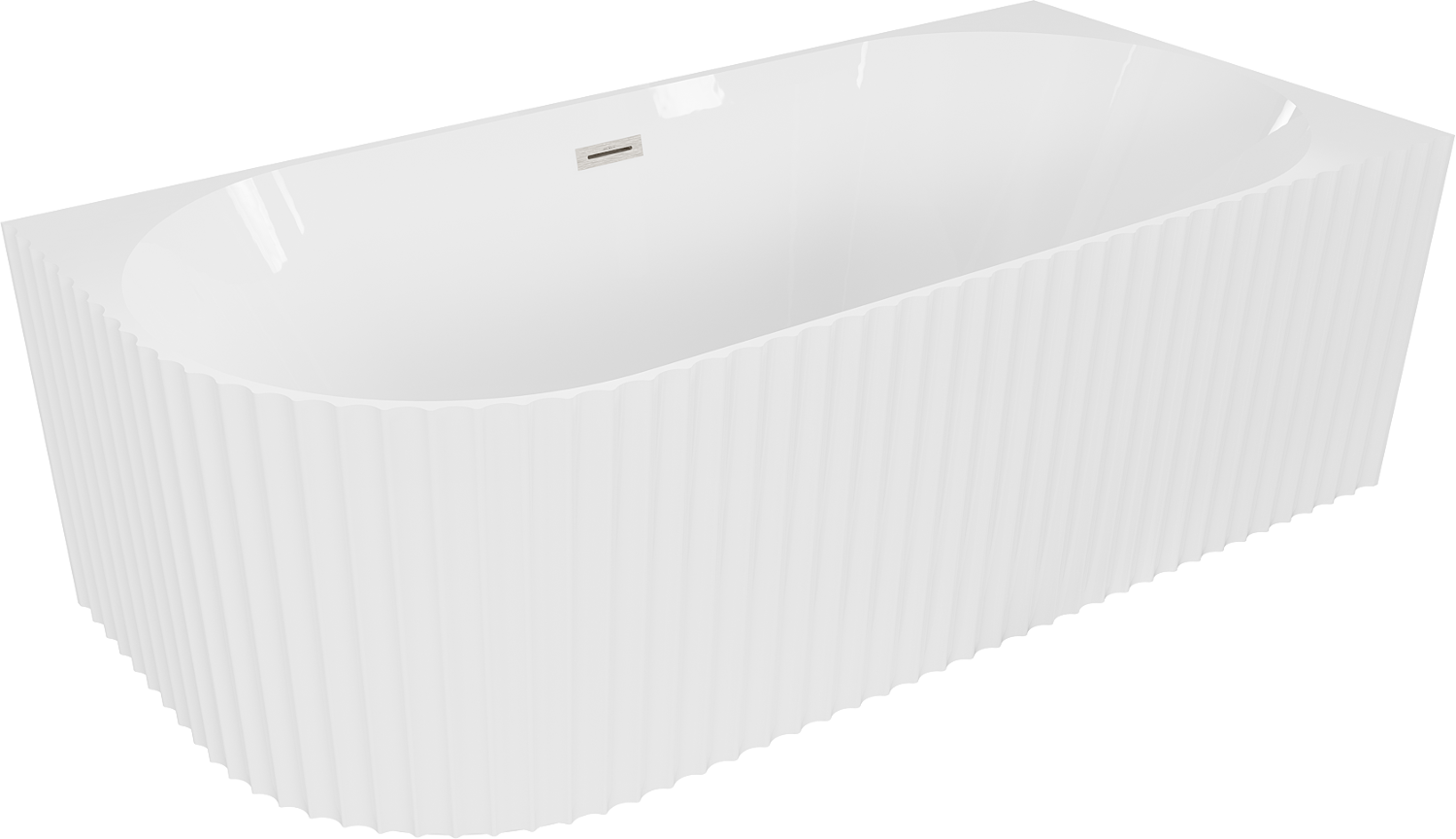 Mexen Gia wanna wolnostojąca narożna ryflowana prawa 150 x 75 cm, biała połysk, przelew nikiel szczotkowany - 52701507500P-97