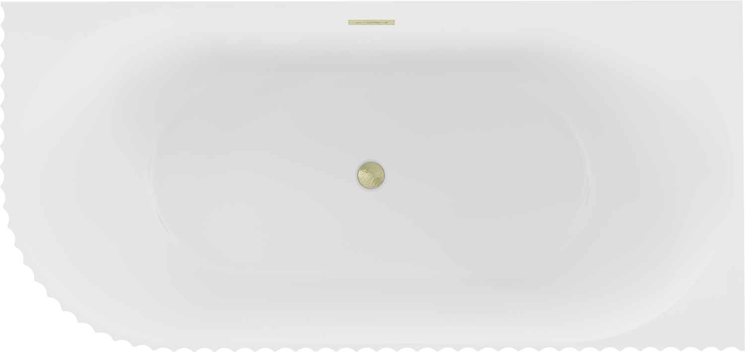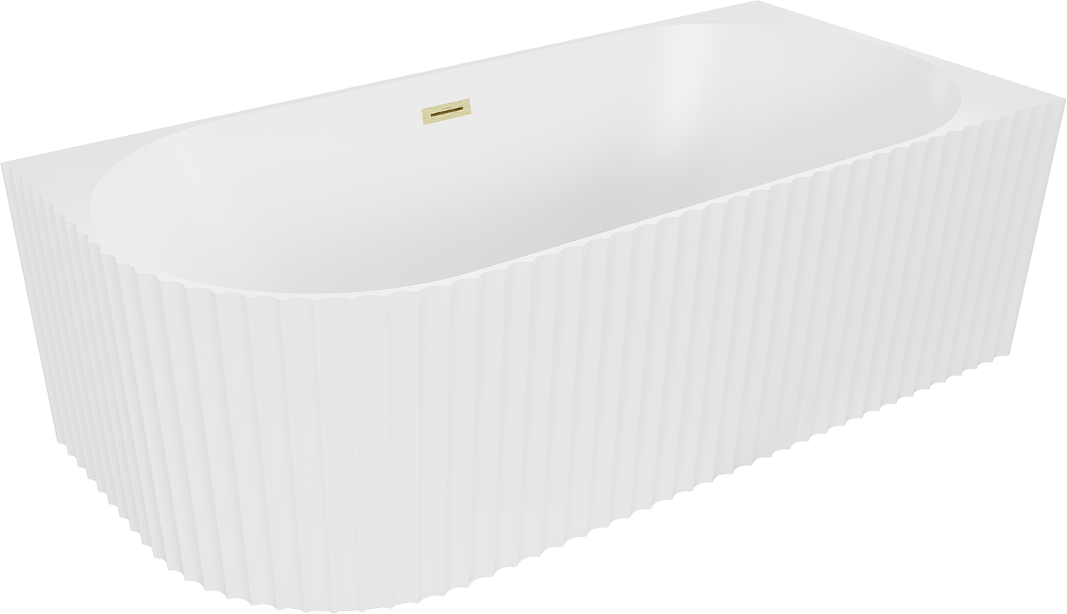 Mexen Gia wanna wolnostojąca narożna ryflowana prawa 150 x 75 cm, biała mat, przelew złoty szczotkowany - 52701507501P-55