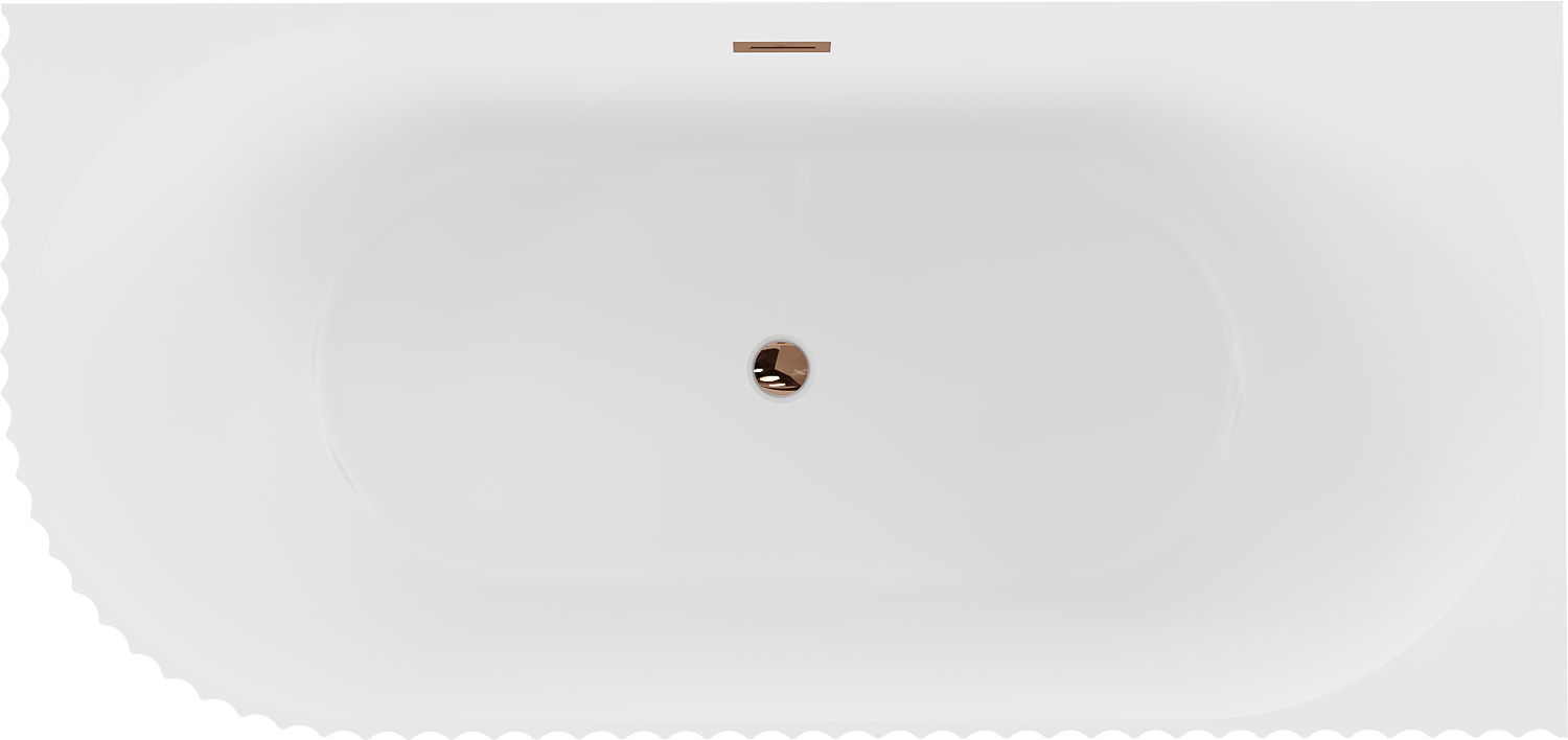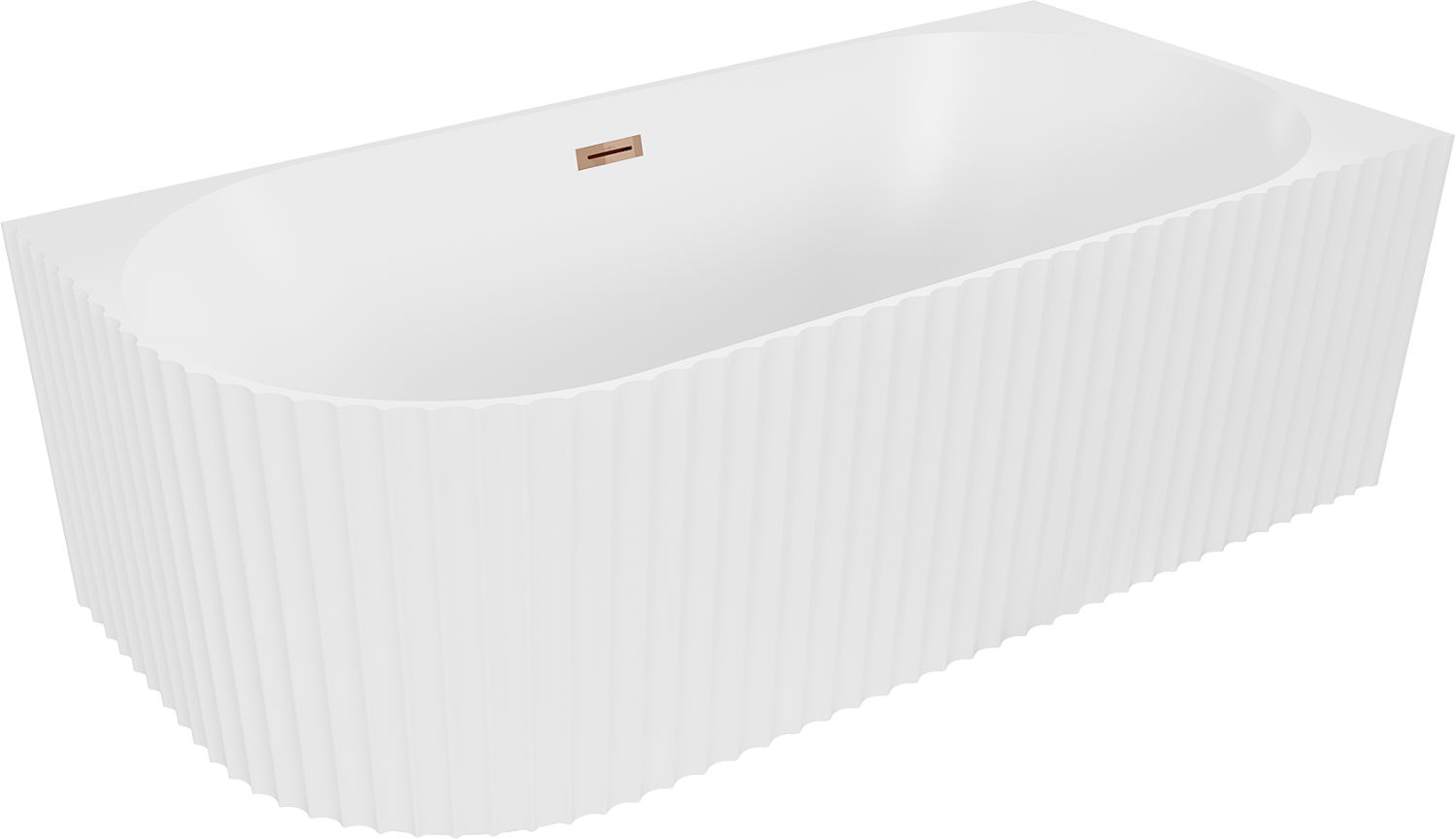 Mexen Gia wanna wolnostojąca narożna ryflowana prawa 150 x 75 cm, biała mat, przelew różowe złoto - 52701507501P-60