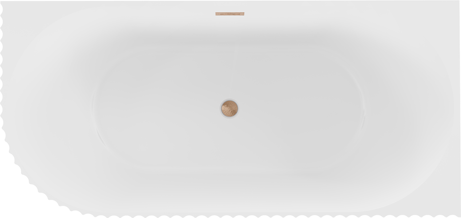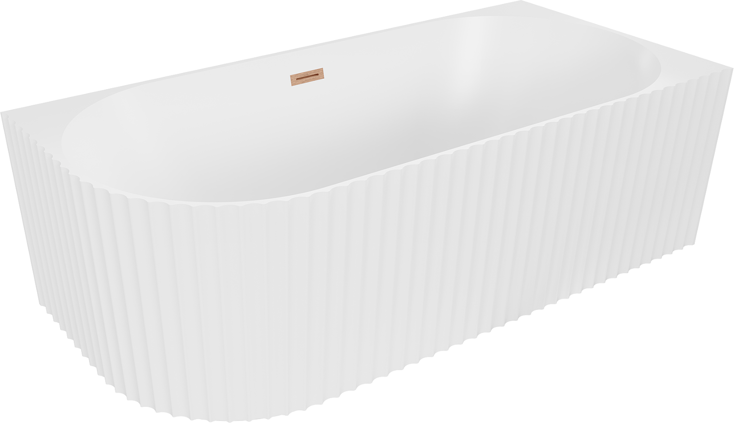 Mexen Gia wanna wolnostojąca narożna ryflowana prawa 150 x 75 cm, biała mat, przelew miedź szczotkowana - 52701507501P-65