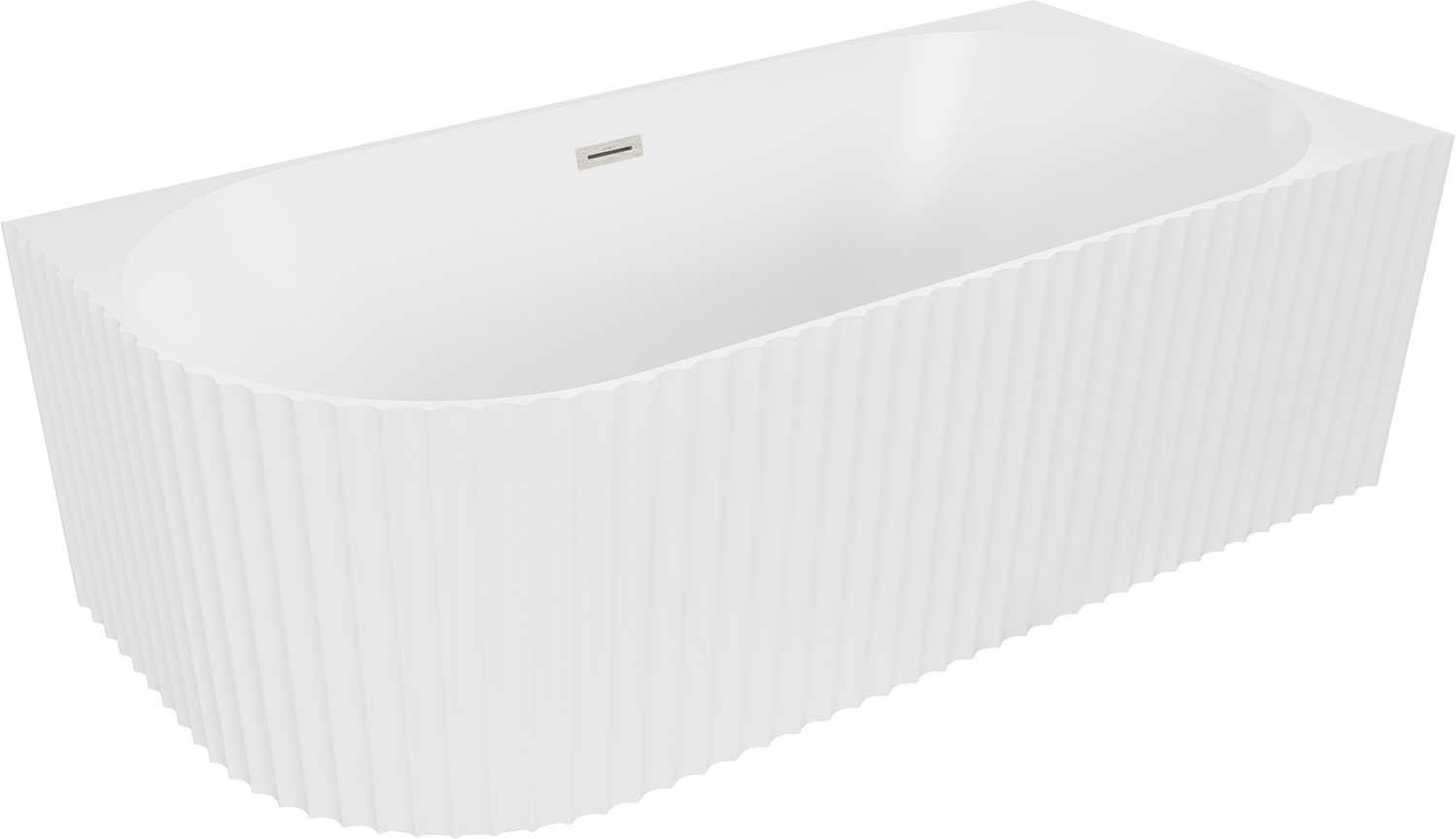 Mexen Gia wanna wolnostojąca narożna ryflowana prawa 150 x 75 cm, biała mat, przelew nikiel szczotkowany - 52701507501P-97