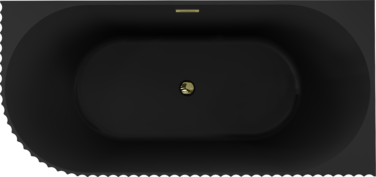 Mexen Gia wanna wolnostojąca narożna ryflowana prawa 150 x 75 cm, czarna mat, przelew złoty - 52701507571P-50