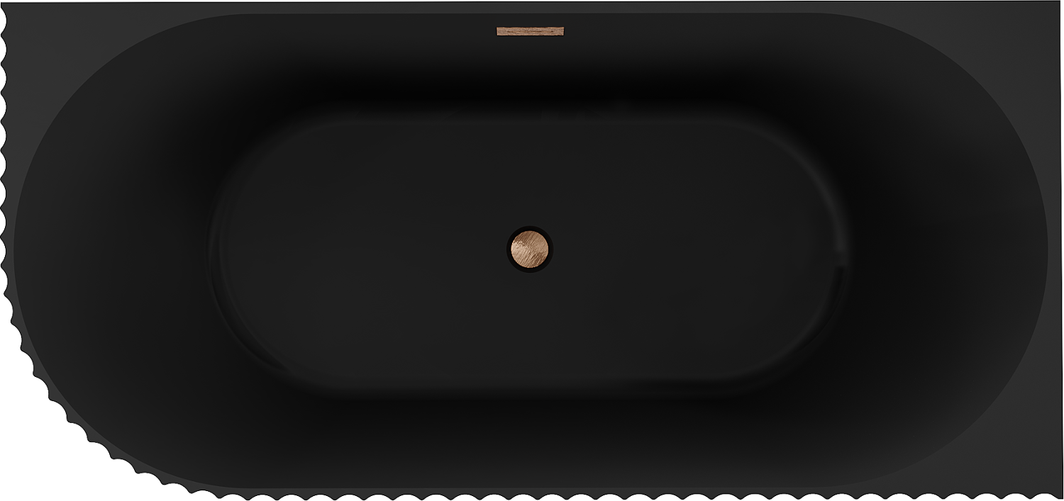 Mexen Gia wanna wolnostojąca narożna ryflowana prawa 150 x 75 cm, czarna mat, przelew miedź szczotkowana - 52701507571P-65