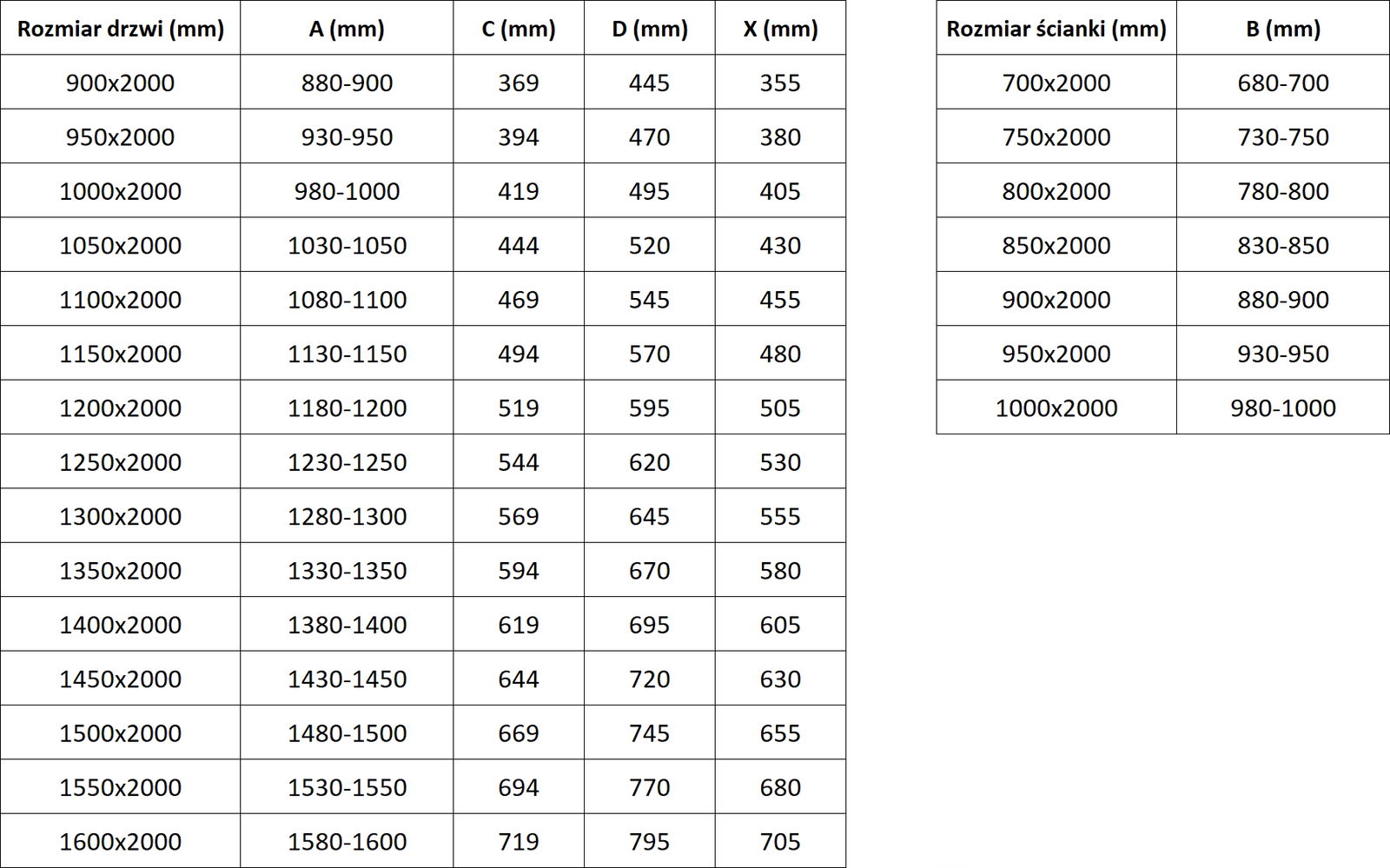 Rozmiar: 135x90 cm (drzwi 135 cm. ścianka 90 cm)