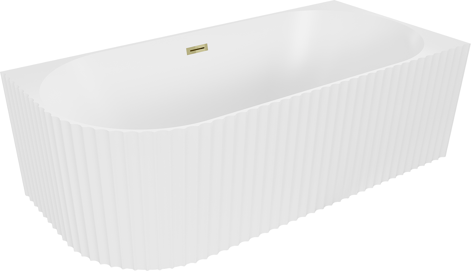 Mexen Gia wanna wolnostojąca narożna ryflowana prawa 170 x 80 cm, biała mat, przelew złoty - 52701708001P-50