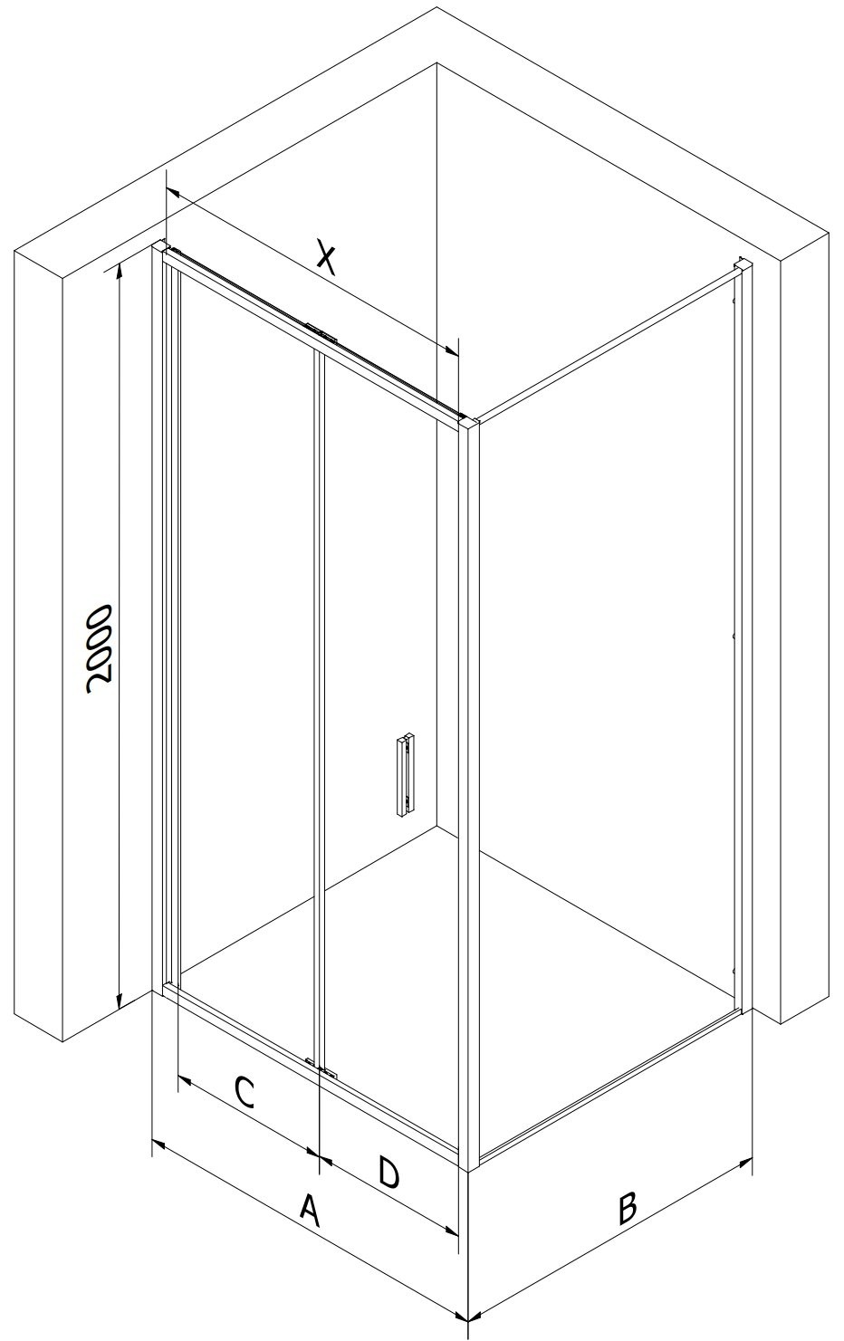 Rozmiar: 80x75 cm (drzwi 80 cm. ścianka 75 cm)