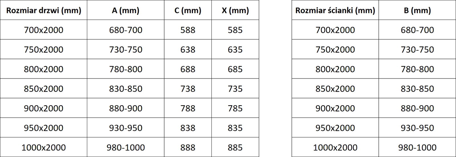 Rozmiar: 80x90 cm (drzwi 80 cm. ścianka 90 cm)
