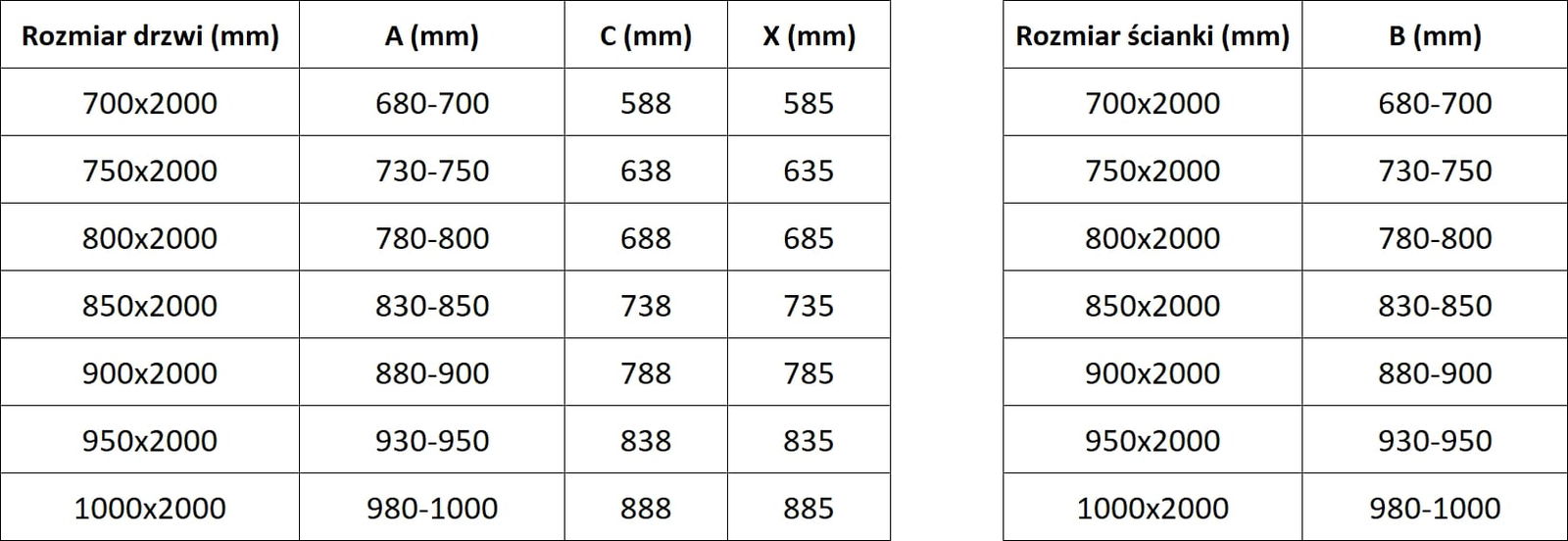 Rozmiar: 85x95 cm (drzwi 85 cm. ścianka 95 cm)