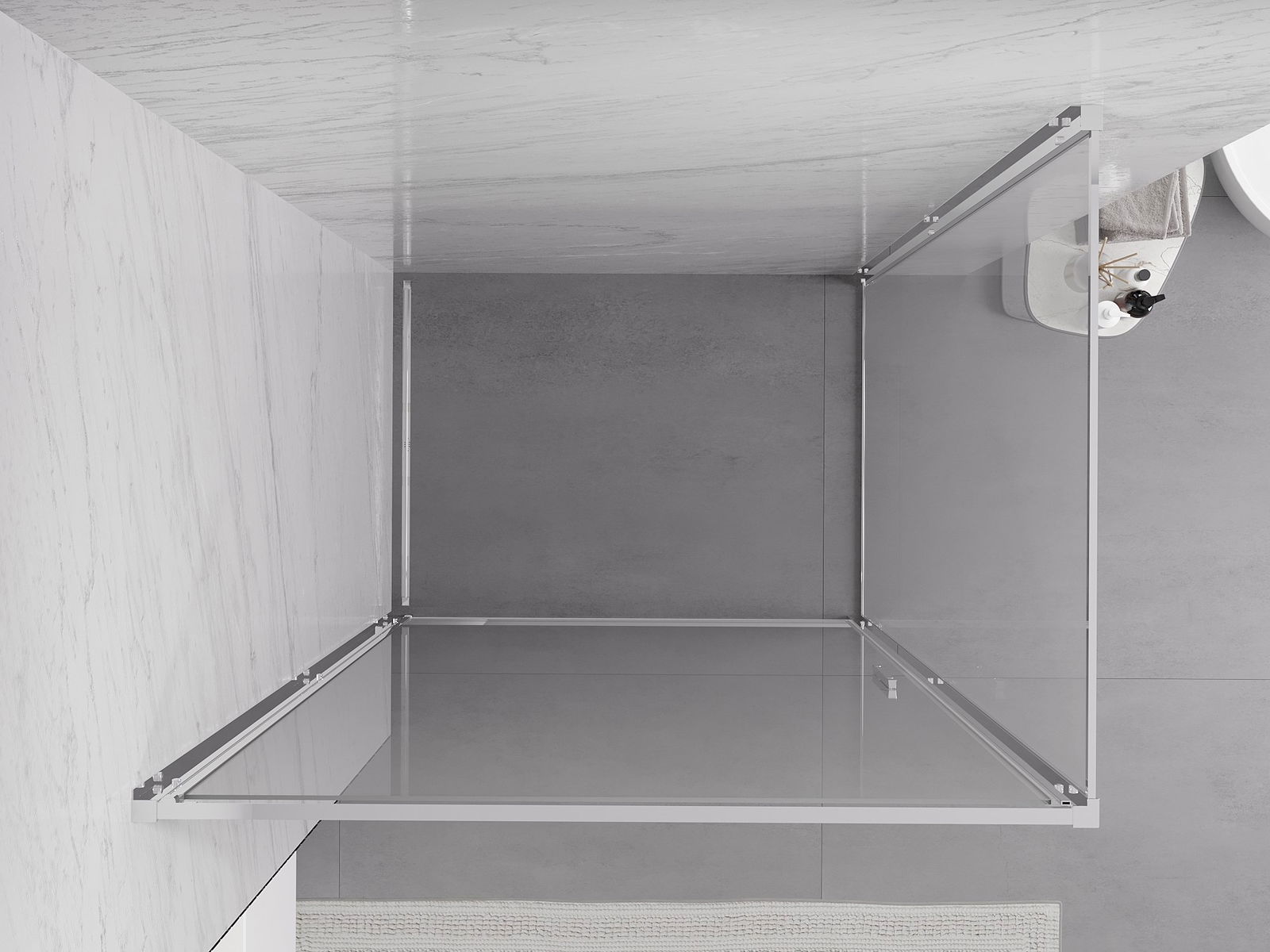 Poręczny i wygodny uchwyt został wykonany z trwałego i odpornego metalu. Modny kształt w połączeniu z wykończeniem dopasowanym do koloru profili nadaje całości nowoczesnego i stylowego wyglądu, podkreślając estetykę każdej łazienki.
