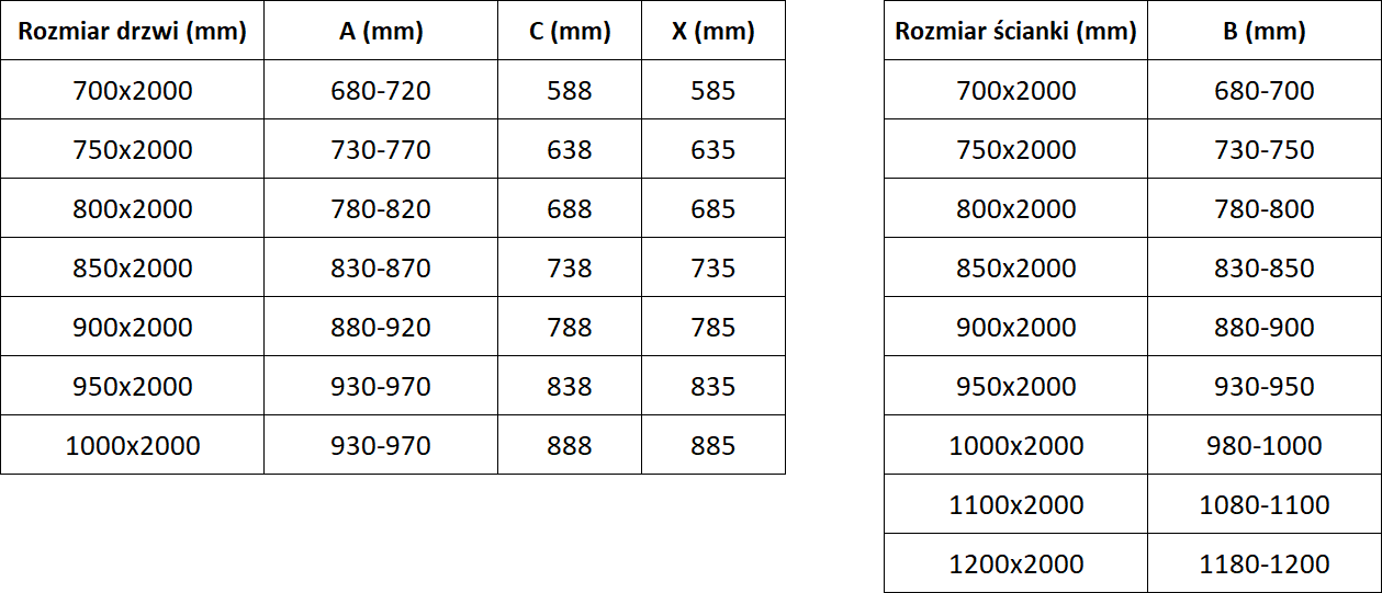 Rozmiar: 80x85 cm (drzwi 80 cm. ścianka 85 cm)
