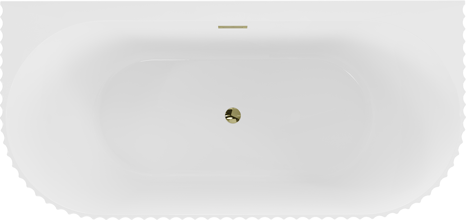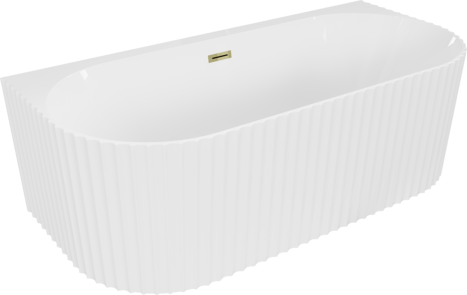 Mexen Sella wanna wolnostojąca przyścienna ryflowana 150 x 75 cm, biała połysk, przelew złoty - 52711507500-50