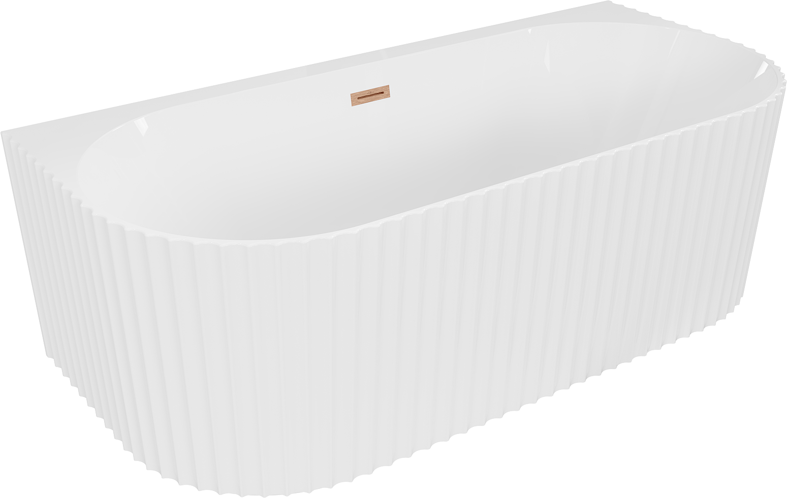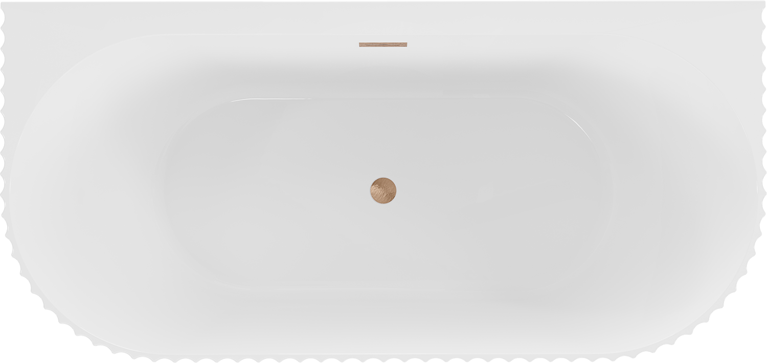 Mexen Sella wanna wolnostojąca przyścienna ryflowana 150 x 75 cm, biała połysk, przelew miedź szczotkowana - 52711507500-65