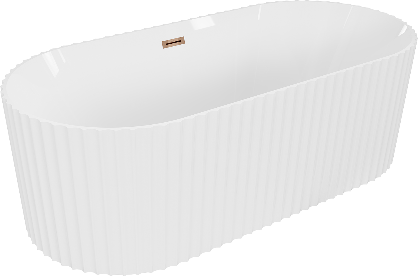 Mexen Paola wanna wolnostojąca ryflowana 150 x 75 cm, biała połysk, przelew różowe złoto - 52721507500-60